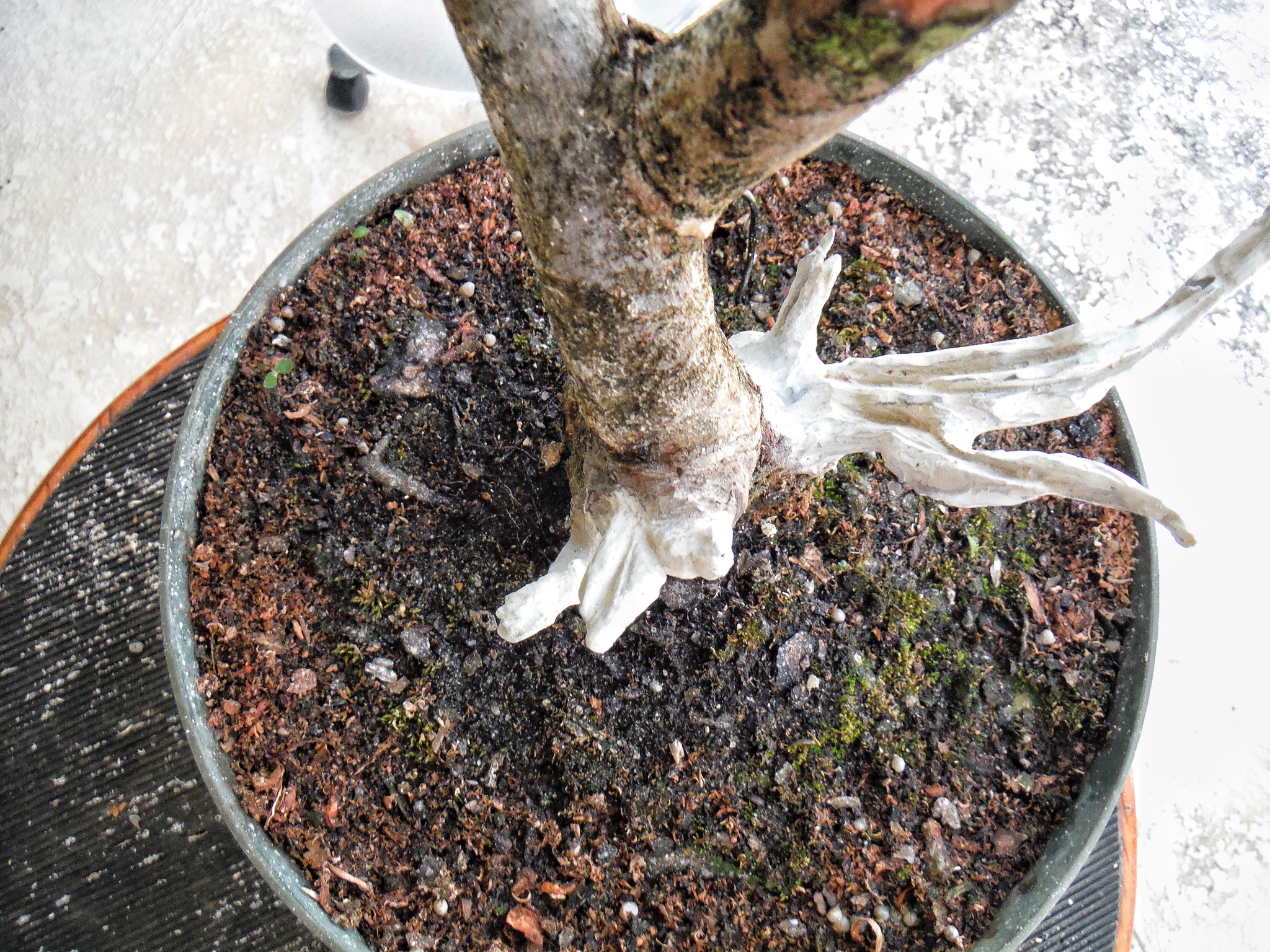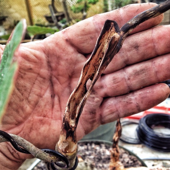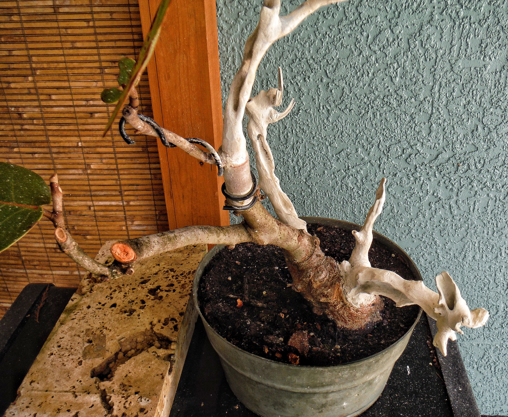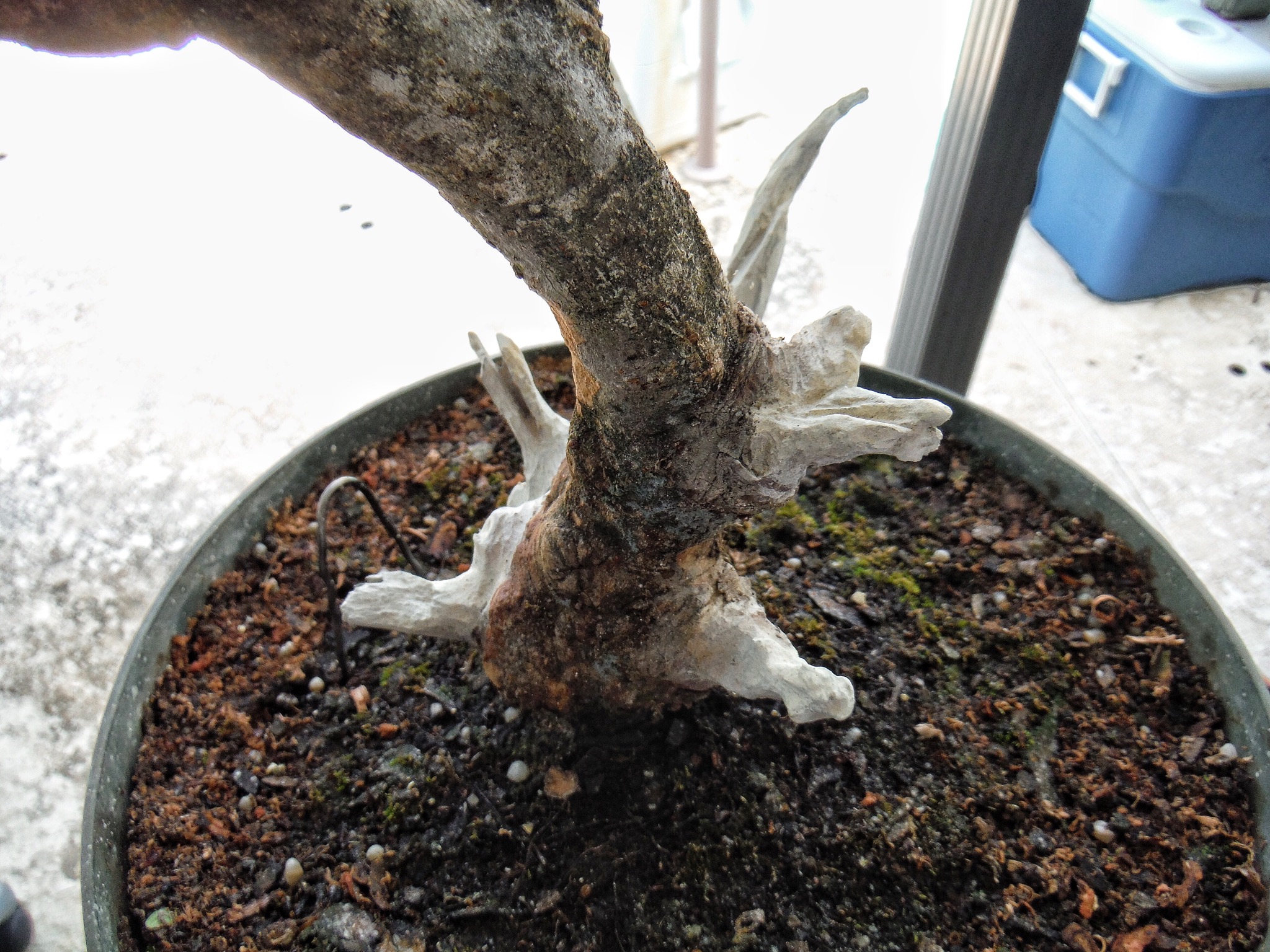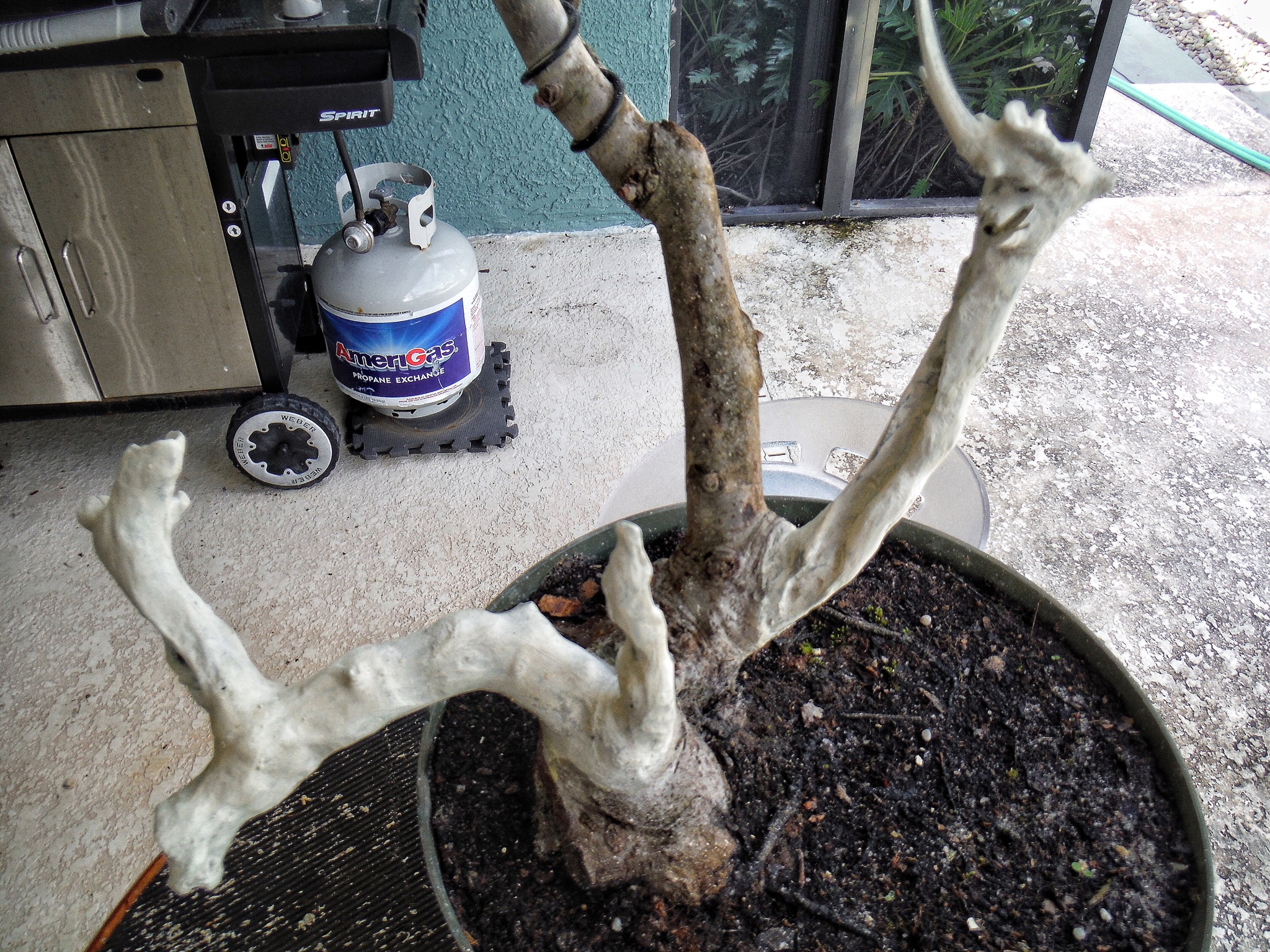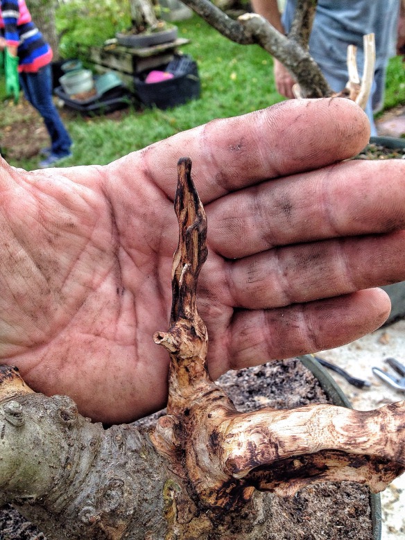 Bobby took the tree home and it was his job to apply lime sulphur to the carved wood. If you’ve ever smelled lime sulphur you know why I let him do it. Phewee!