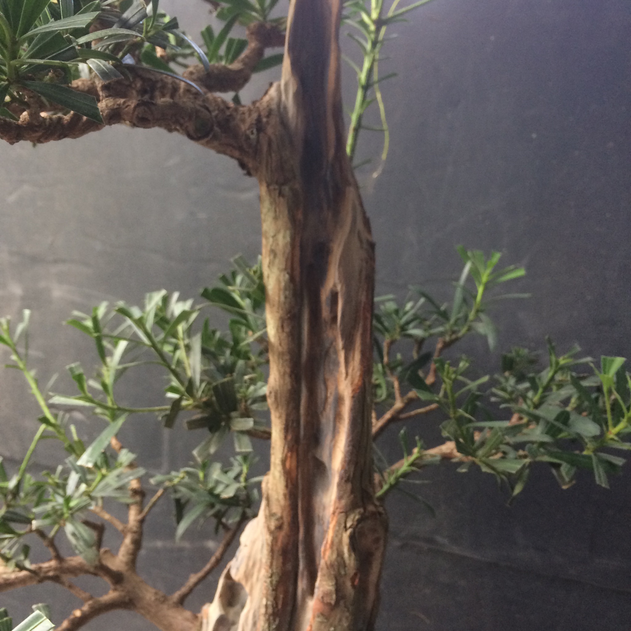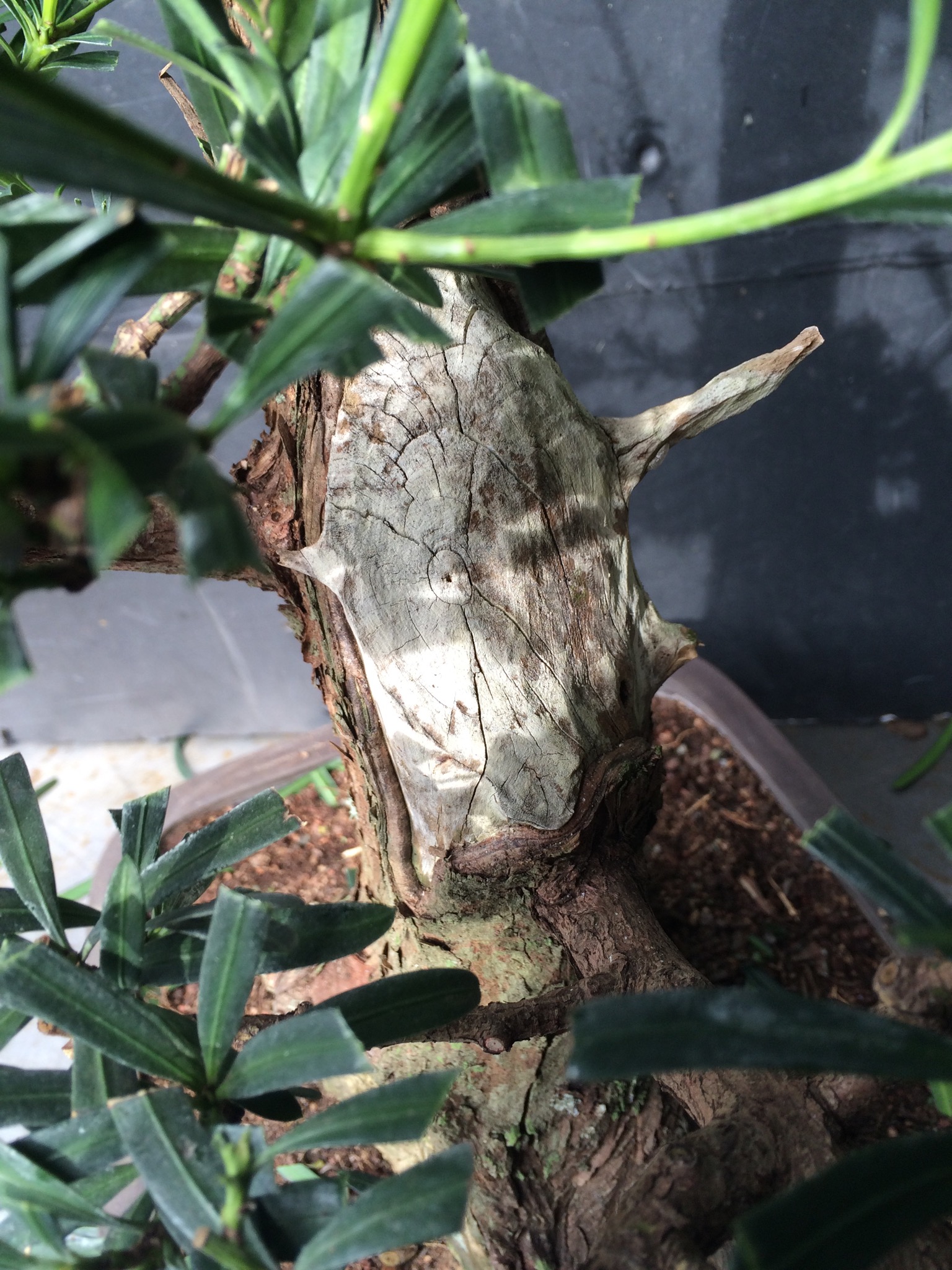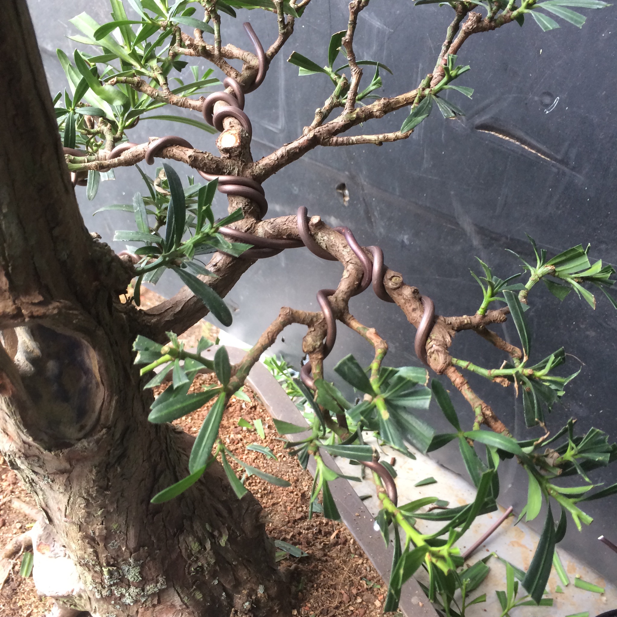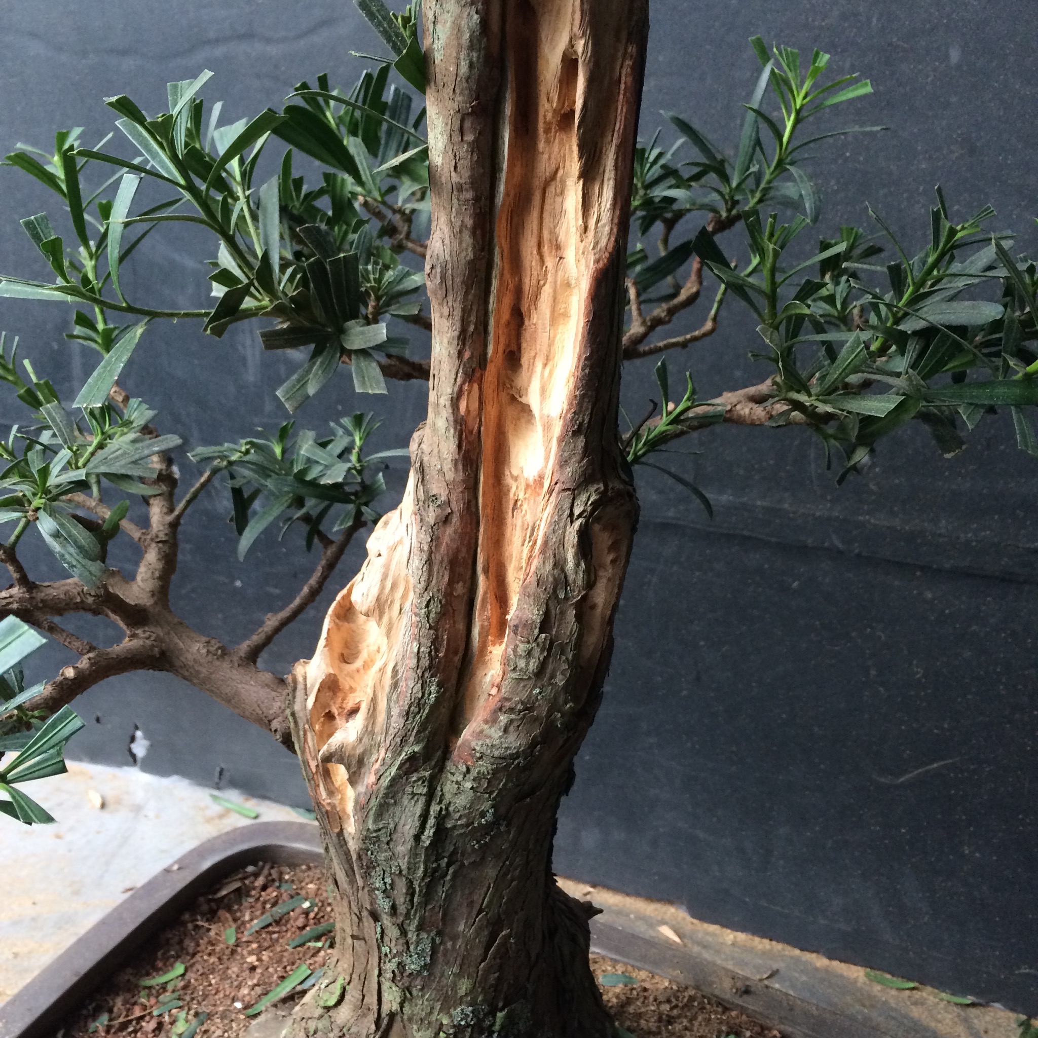 Somehow, I always end up with the problem trees. Take this podocarpus.