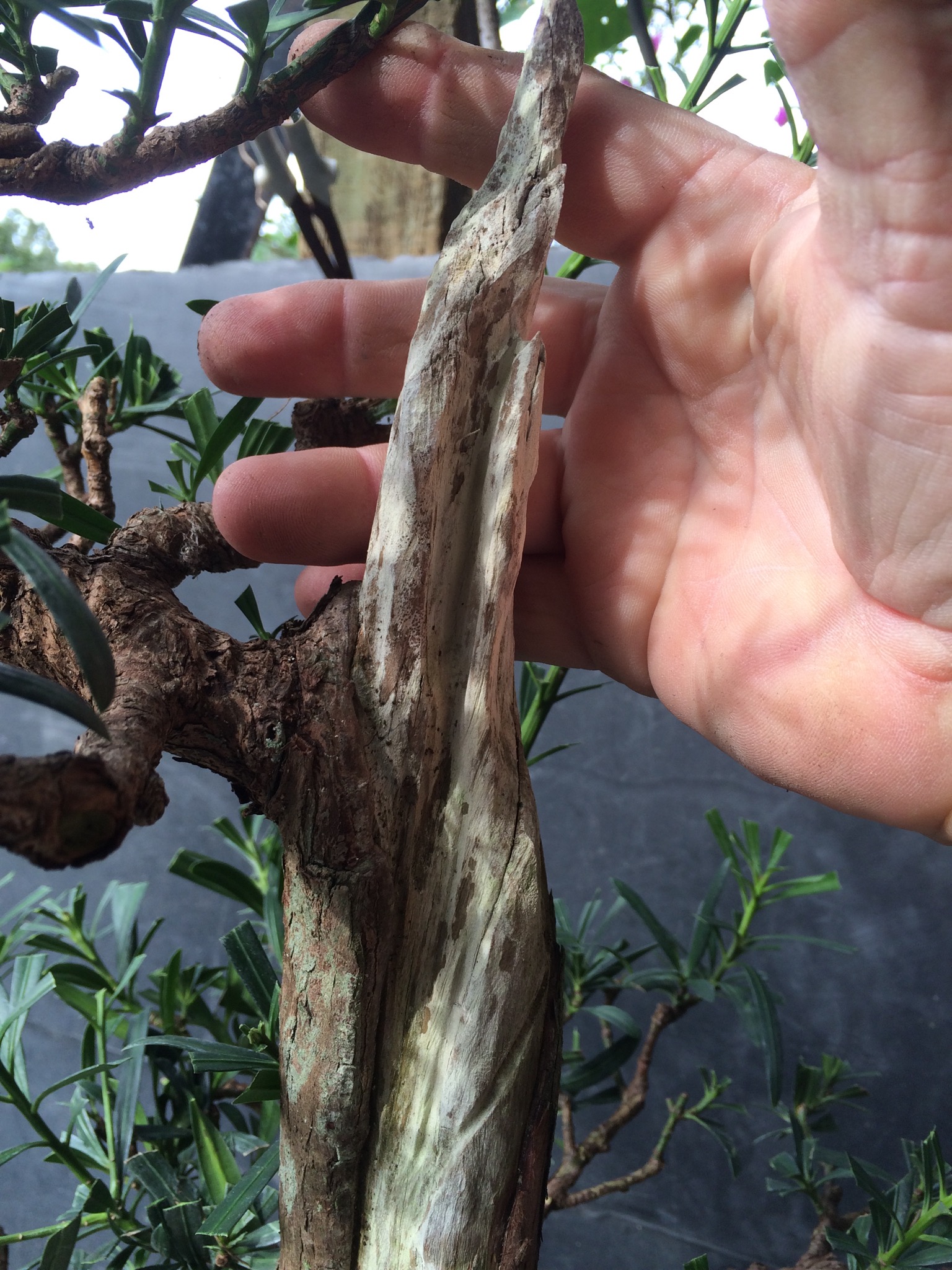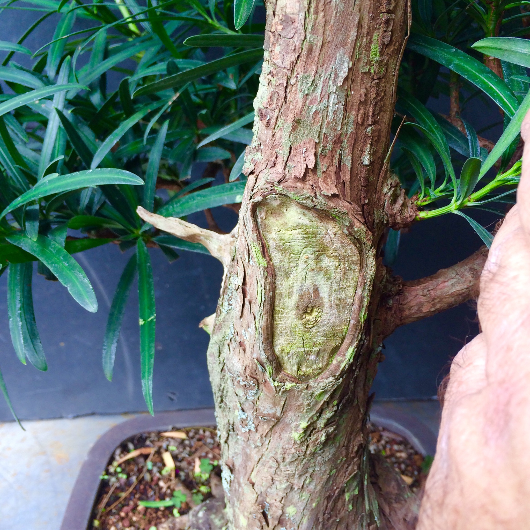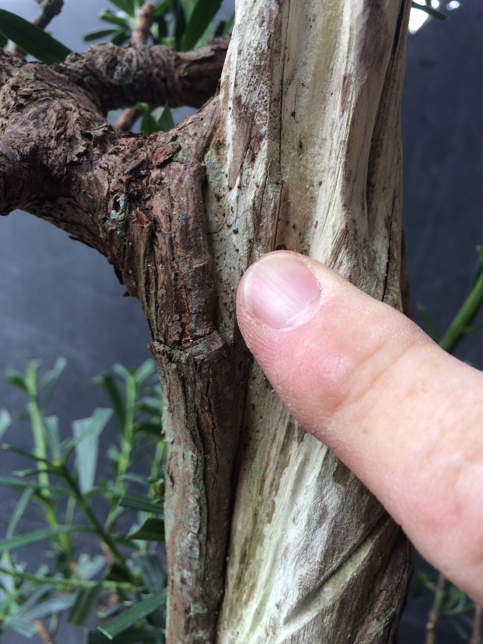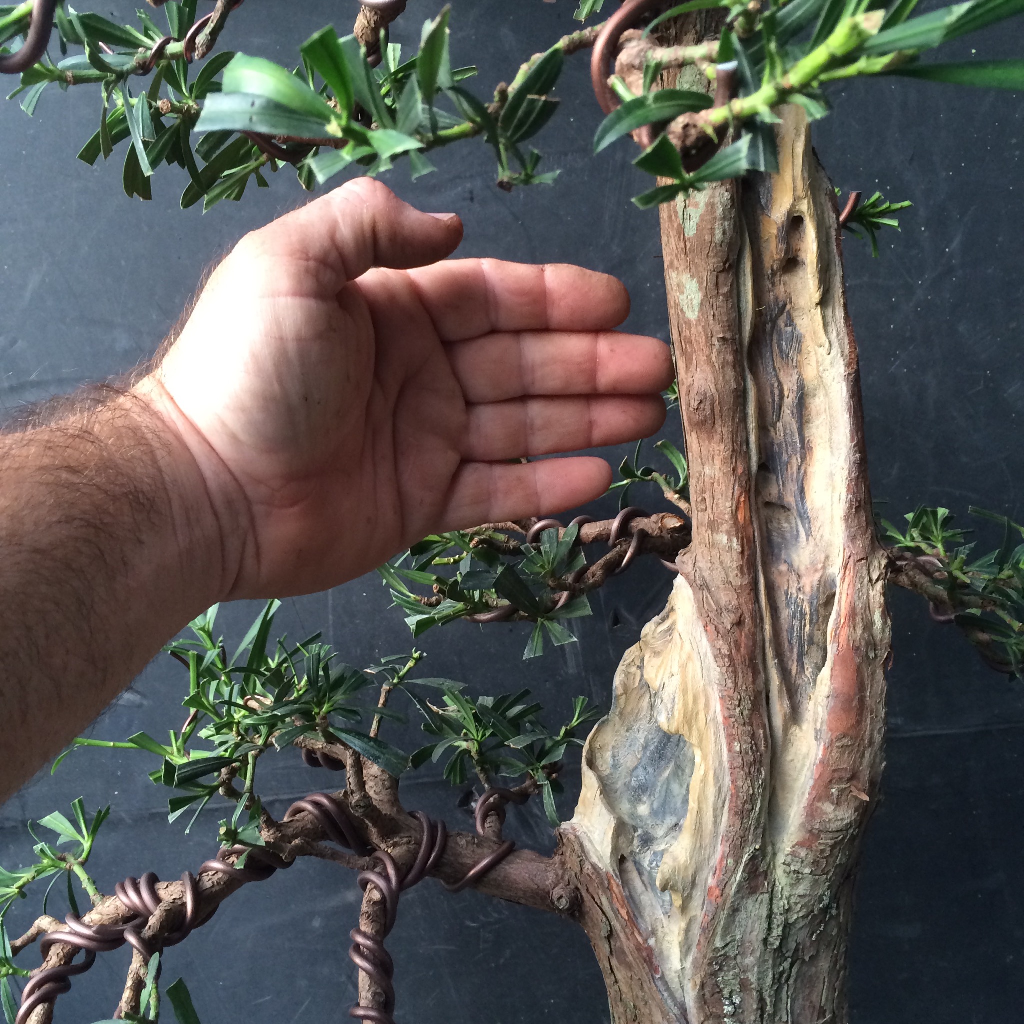 Somehow, I always end up with the problem trees. Take this podocarpus.