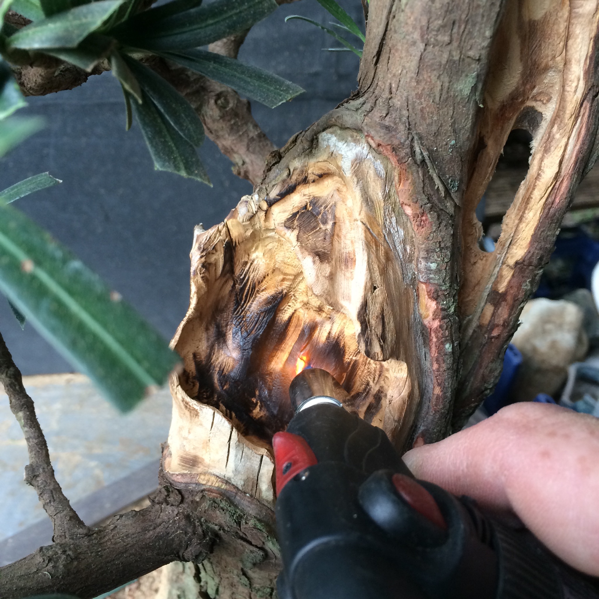 I also use a torch to burn off tool marks, rough edges and pithy fibers.