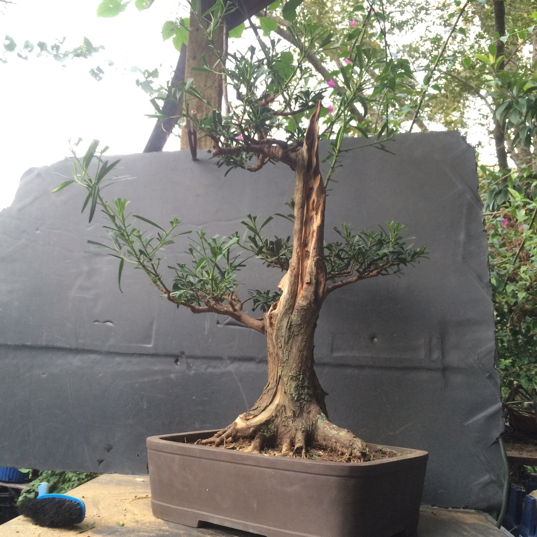 Considering that it’s native to southern Japan (it’s the official tree of the Chiba Prefecture) you don’t see it much as bonsai there (I don’t think I’ve ever seen an example). I have seen it used often in Chinese penjing ( it’s also native to China). In Japan it’s called kusa-maki, which sounds like grass-sushi (maki is the japanese word for a sushi roll. And kusa, as in kusamono, is grass or a wild plant.)