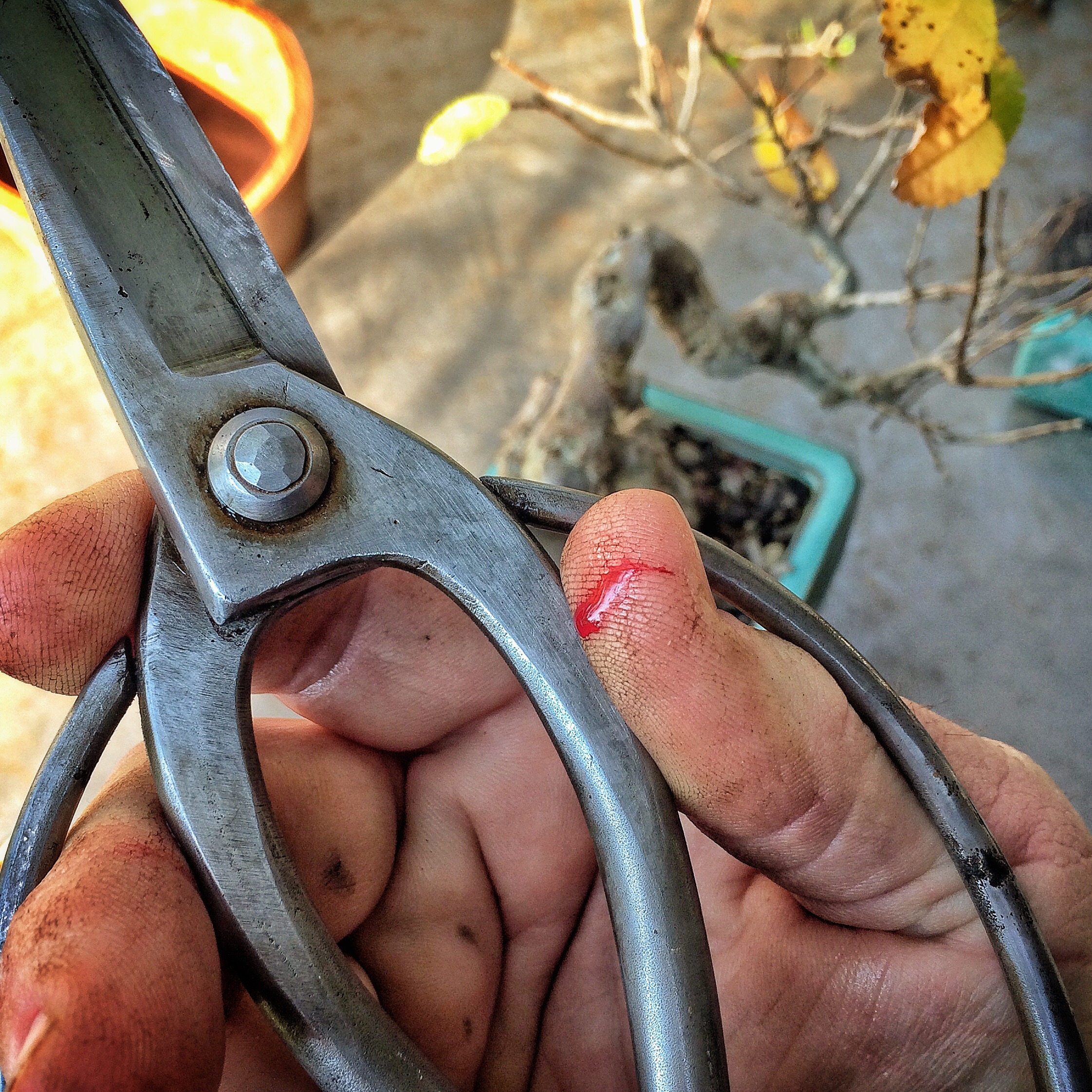 Now, you’d think that people (and you Kaya) would focus on the bloody thumb, but no, NOOOO, they wanted to see the blurry tree in the background. Damn bonsai obsessed people.