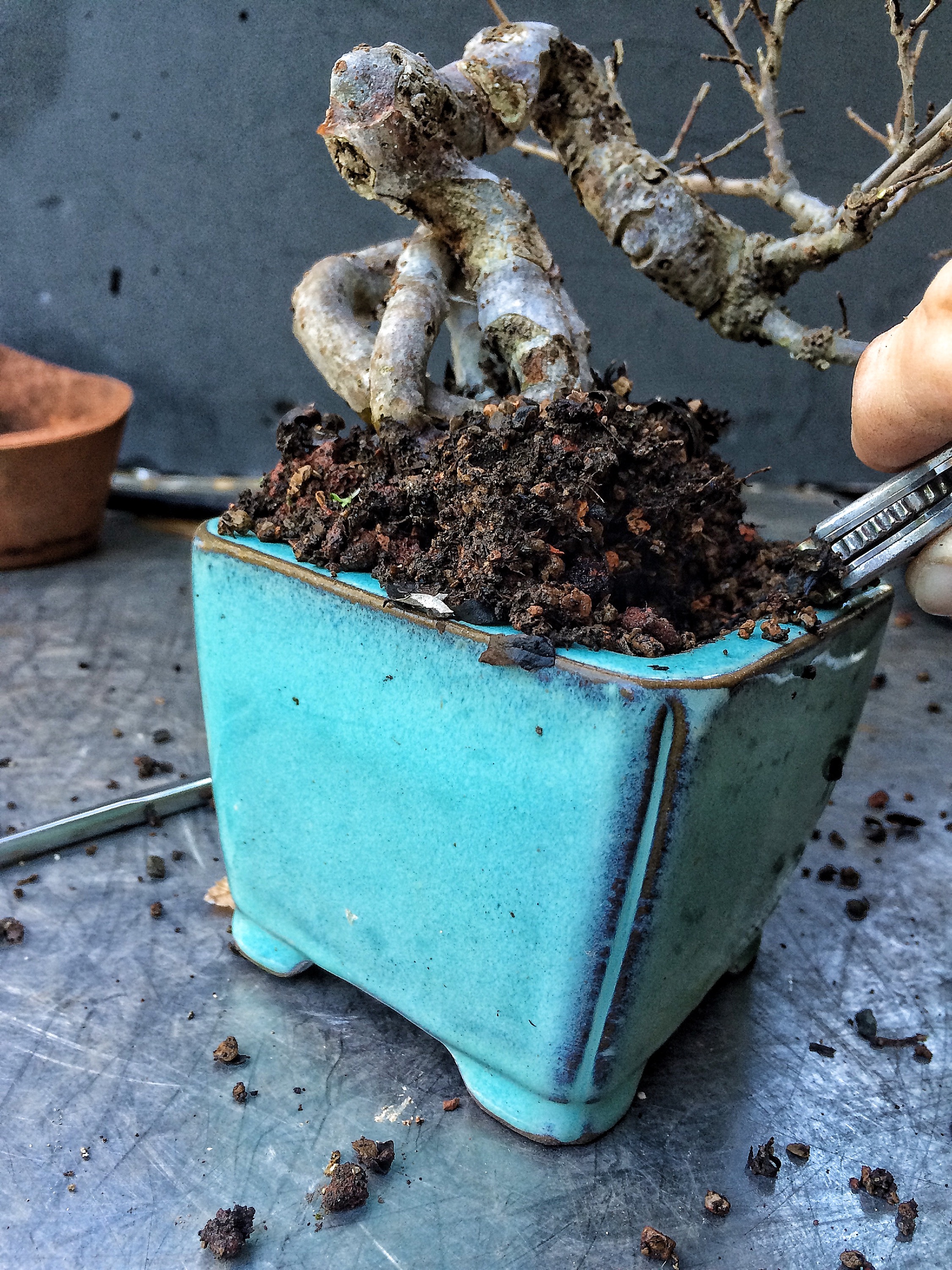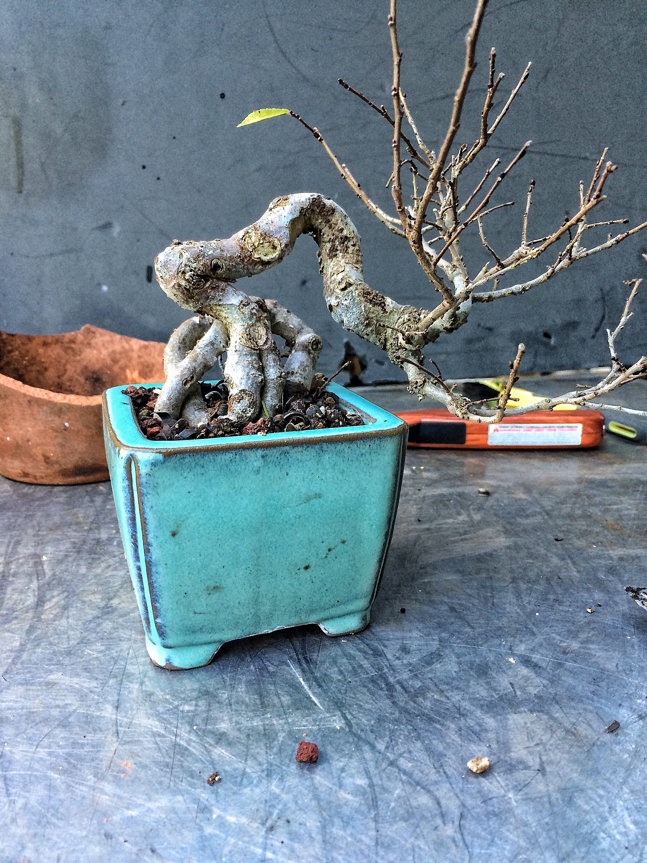 Anywho, it’s on the bench to be repotted and trimmed/wired.