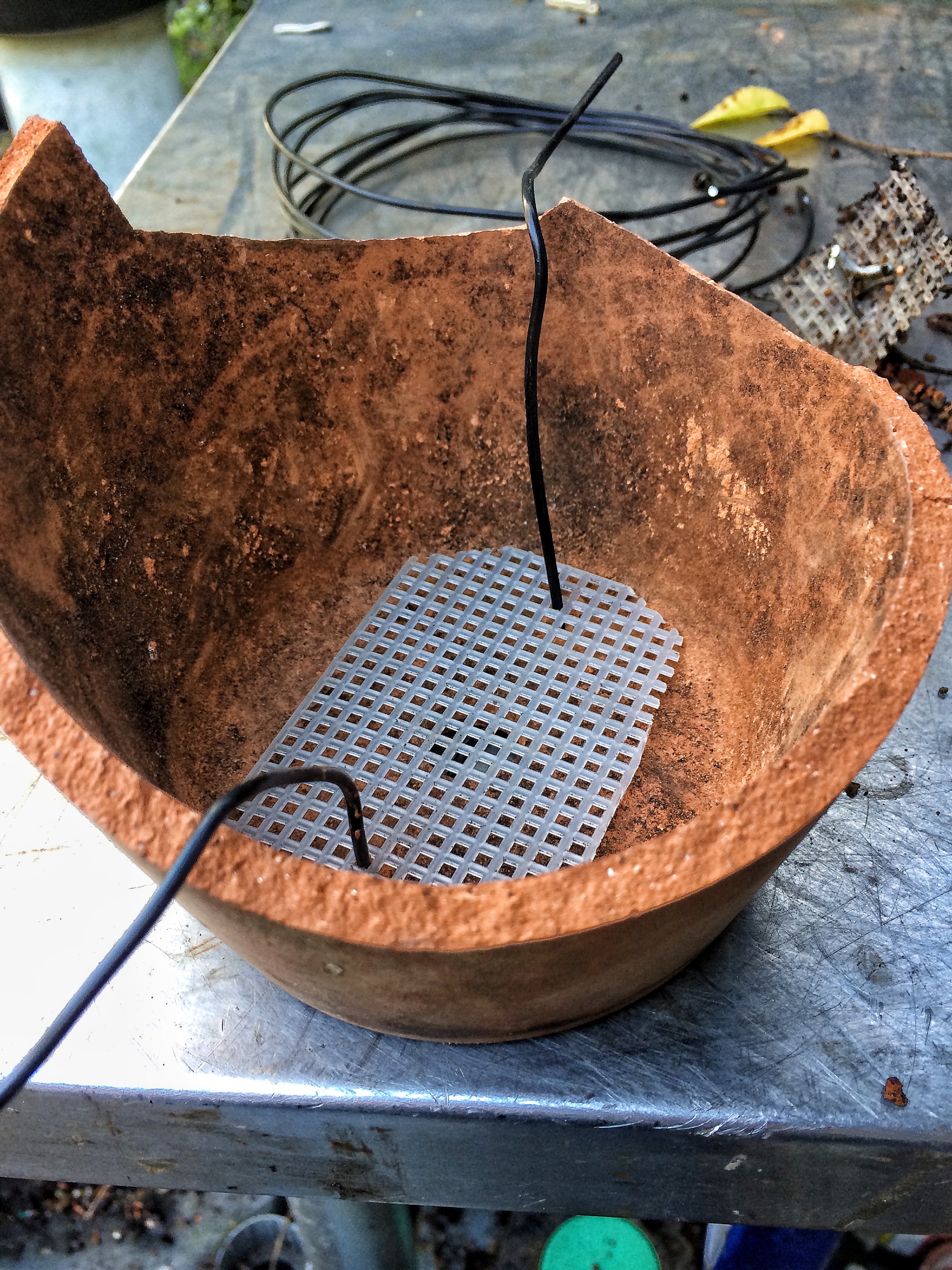 Ok, it is just an old terra cotta pot I chipped into a semi-aesthetic shape but I think it works, along with changing the front and rewiring the structure.
