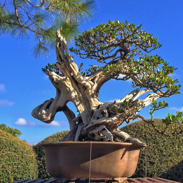 Unfortunately, due to some construction occurring in the Japanese Pavilion, the amount of trees that the Bonsai Societies of Florida were able to show was reduced; the usual number is 21and there are only fifteen this year.