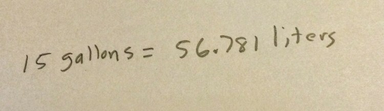 For those who are metrically predisposed, 15 gallons would be….