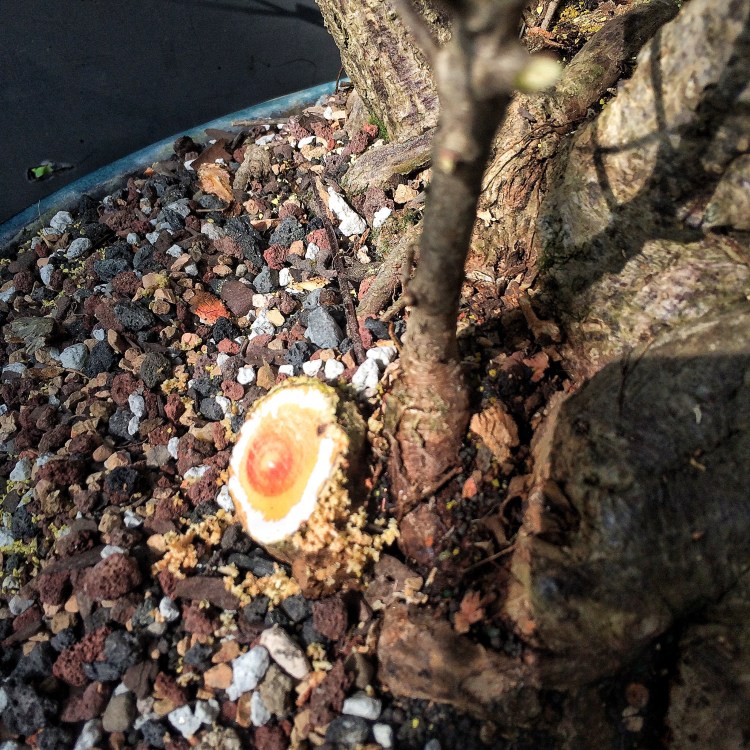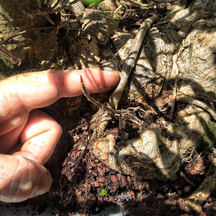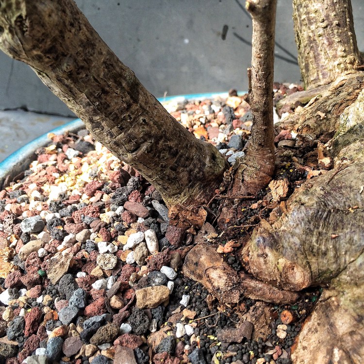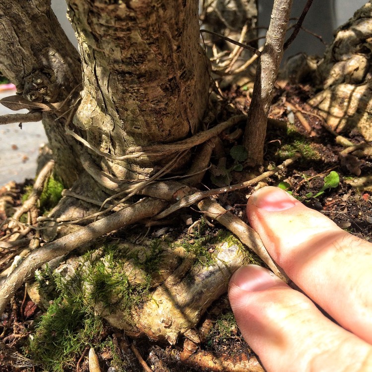 The roots need some work: Delving back in time before the tree was purchased from the original grower (that would be Jim Smith), this clump was a part of (probably) a large, single trunked specimen.