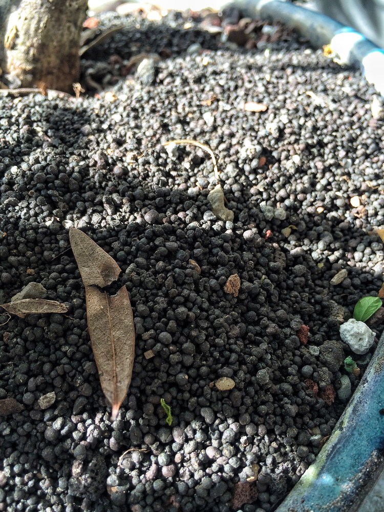 No, that’s not too much. It won’t burn, the analysis is 5-2-1.2 with 4% iron. I use a fertilizer called Milorganite. It is organically derived. Of course I don’t leave it piled on top like that, I chopstick it in. (There have been people of late who have been putting their organic fertilizers into teabags and placing them on the top of the soil. Besides controlling the growth with lower nitrogen levels, the main point of organic fertilizers is to build the soil up with all the beneficial micro-organisms, like mychorizae, that are essential for healthy, growth. If you don’t put that fertilizer in the soil, there’s no place for those organisms to live, especially in our mostly inorganic soil mixes. Food for thought…).