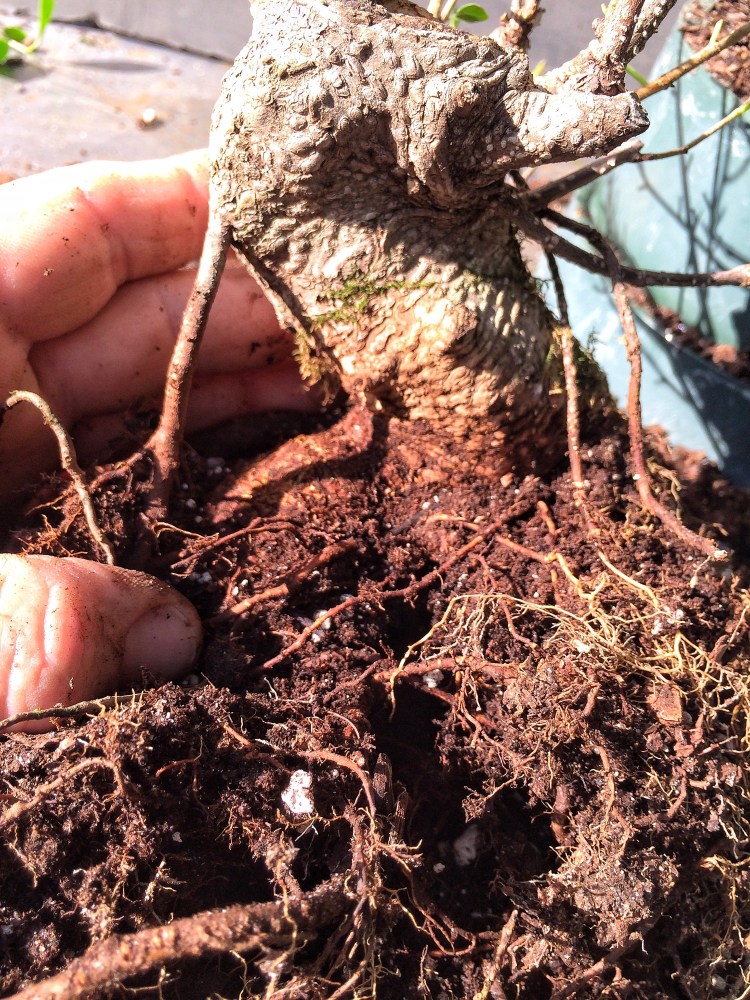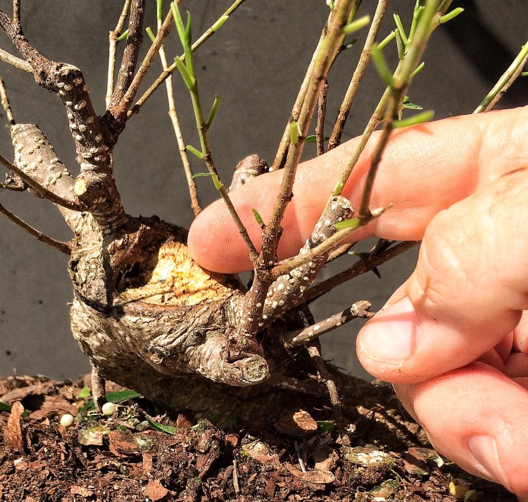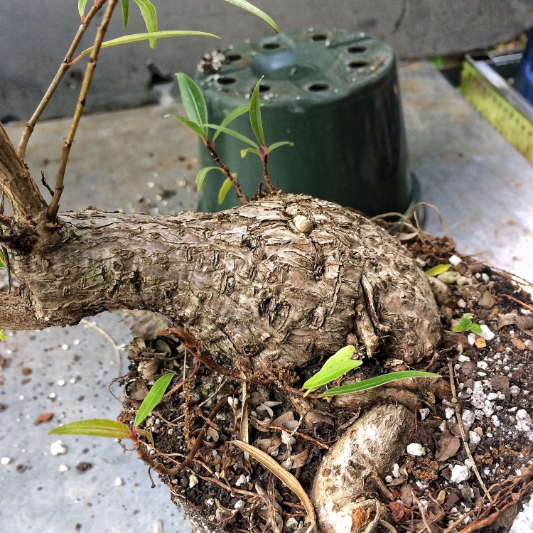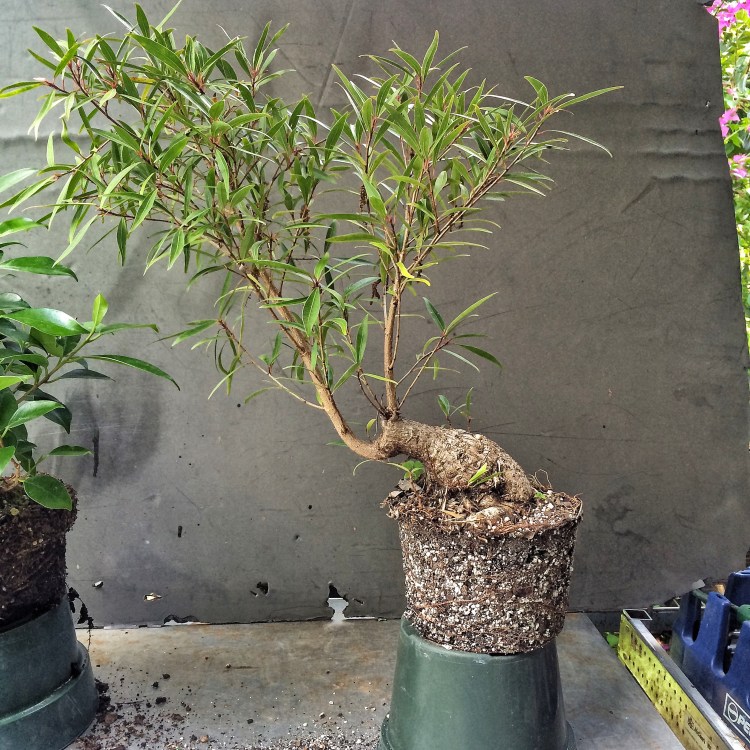 I have plently to work with. This tree probably started out as a larger s-curve that was dramatically reduced and allowed to grow out again. Something I might do but I got the plant from D&L Nursery in Ocala. One of my go-to places for quality trees. Their website is dlnursery.com. Dave (the “D” in the operation) has a tree at Epcot this year, a serissa, believe it or not.