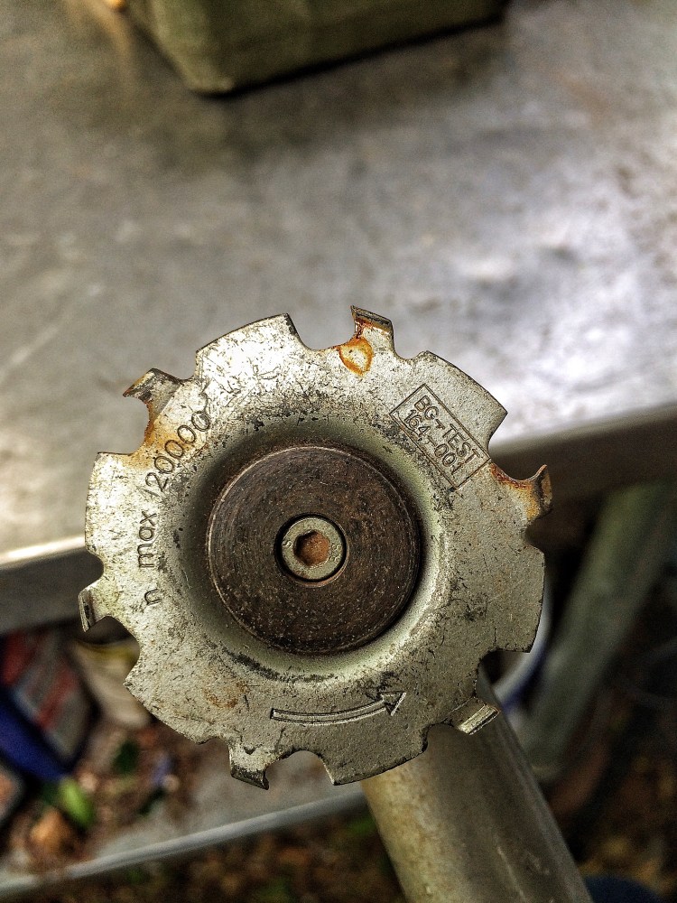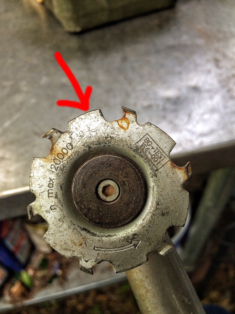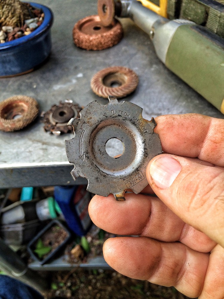 The tool is a German made mini-angle grinder that is distributed in the U.S. by King Arthur Tools. The wheel I’m using is the thinnest carving wheel on the market (made by an Australian company called Arbortech).