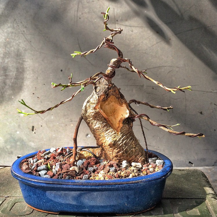 I’m such a stinker, I know. But I think it deserves its own post and not just a brief write up on the second half of a post. In apology, here’s a quick styling of a tree I grew from a pencil thin cutting. I believe it’s been ten years growing.