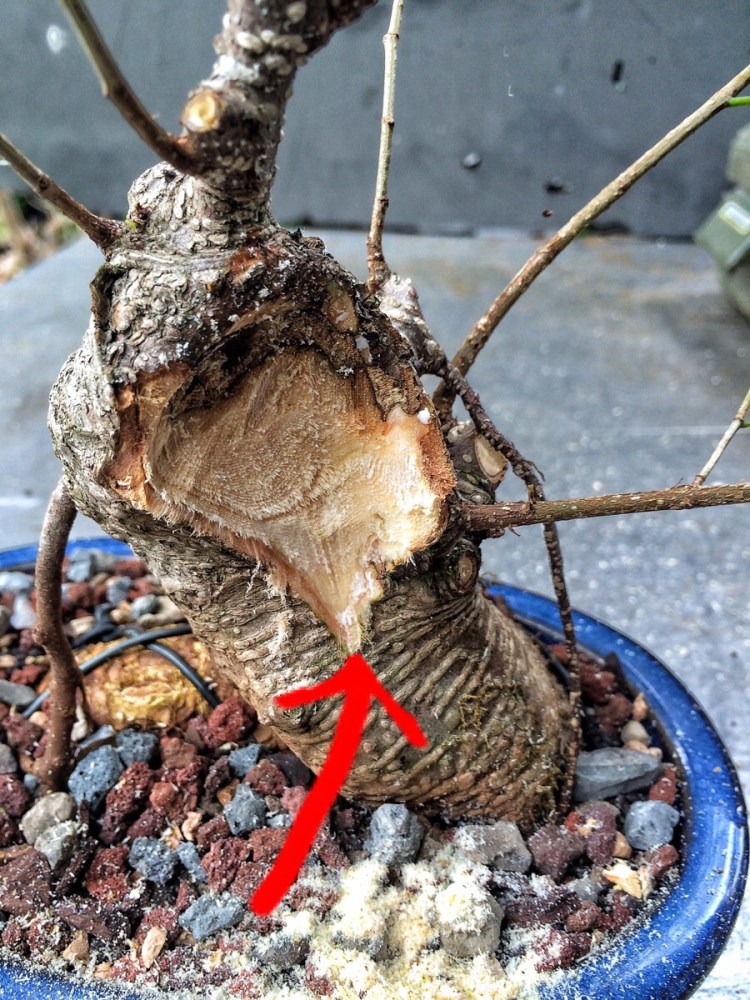 My challenge was to make this into a semi-cascade. A little background on the tree. You’ll notice the, almost, caudex like growth on the base.