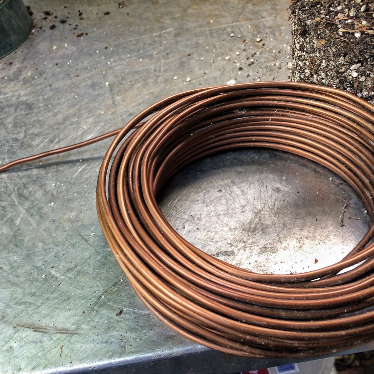 This wire happens to be about twenty years old (it might be older than Seth). Here’s some metallurgy for you: this is aluminum, the older it gets (with exposure to the heat/cold cycle) the stiffer it gets (much like an old man’s joints but not much like his, well, you know). If you are using copper, this problem is even worse. Copper must be heated to make it soft and usable for bonsai. It too gets stiffer with age but, even worse, the more you bang it, move it, drop it etc, the more hard spots you’ll get. So be gentle, don’t go tossing your wire on your bench.