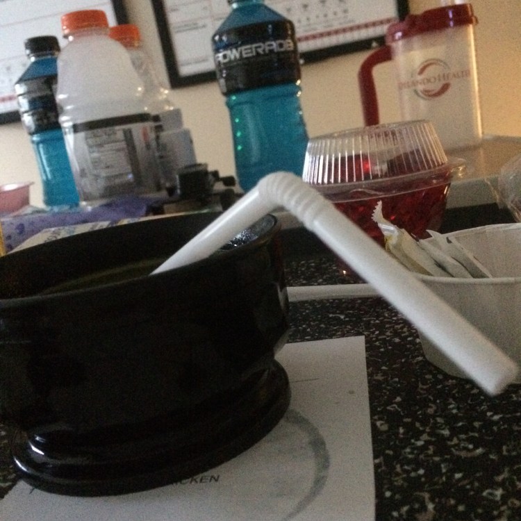 I had some interesting meals. This was my liquid diet. Broth, jello, Italian ice.