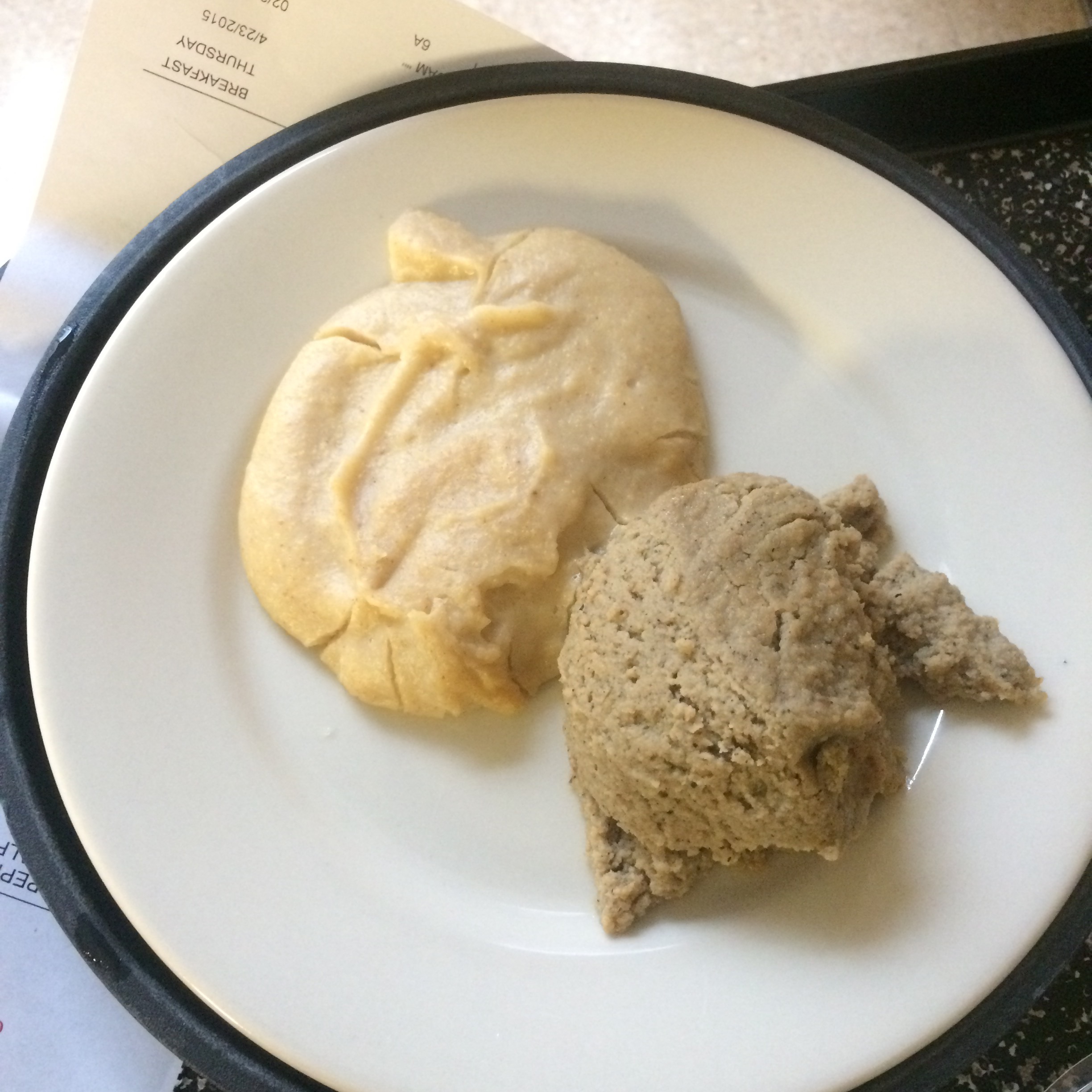 this is no lie; the top bit of mush is puréed pancakes (yes, pancakes) and the other pile is puréed sausage……there is something wrong with the concept.