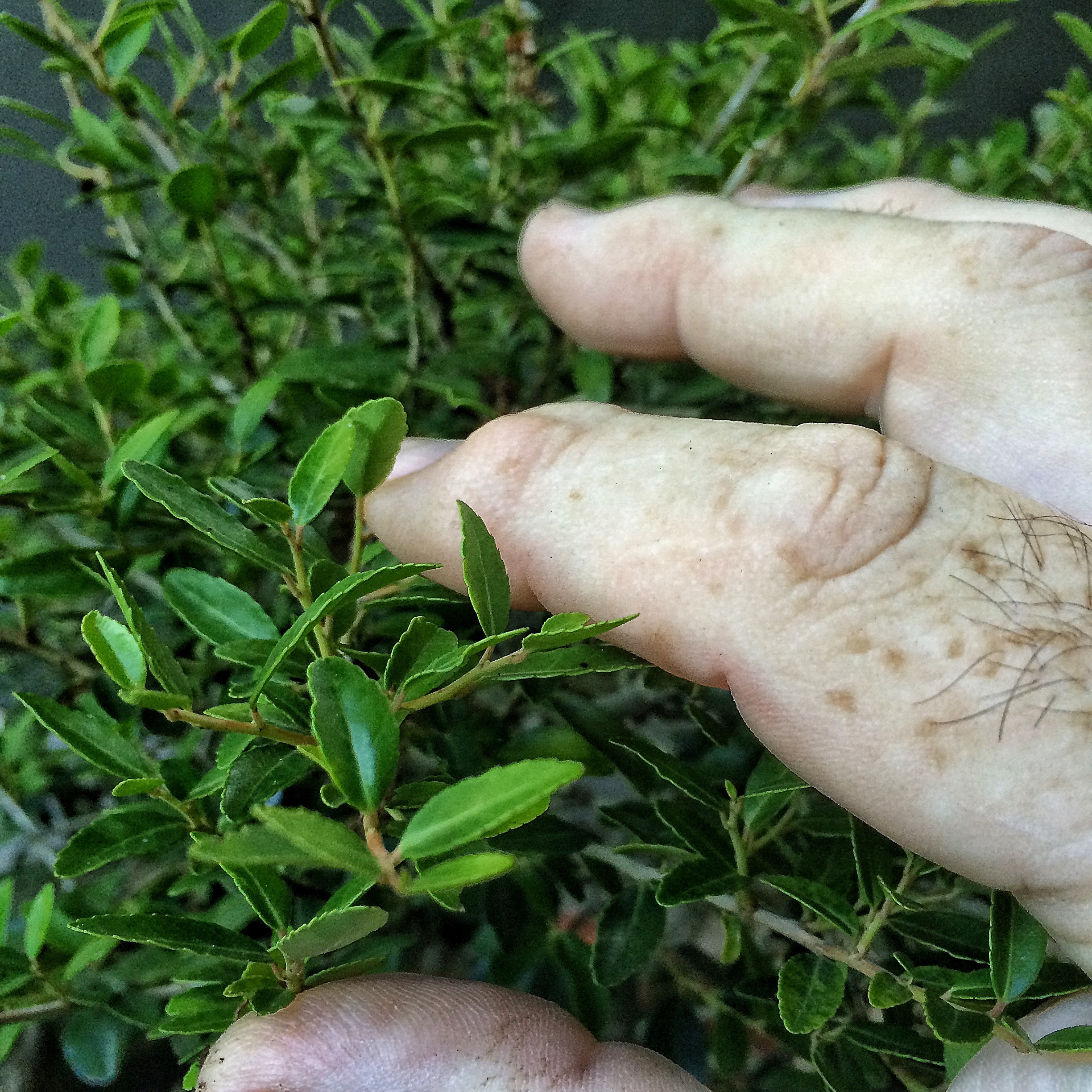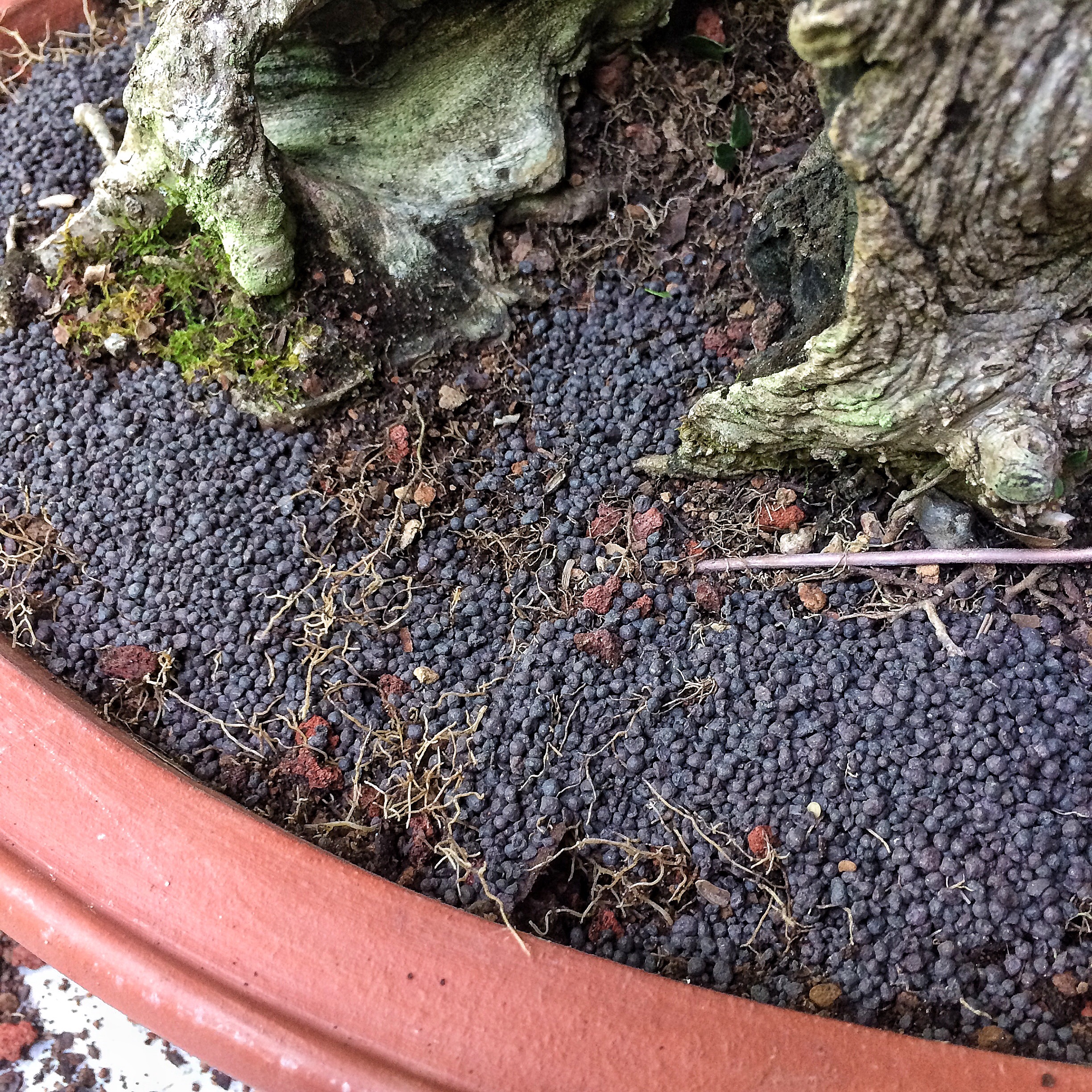 Combine that with the leftover organic fertilizer (I don’t use cakes or pellets or tea bags. I apply it right on the soil. My practice and my prerogative) and it means that this tree will stay too wet at times but will dry up fast if we have a dry day. Oh, woe is me, what’s a bonsai person to do?!
