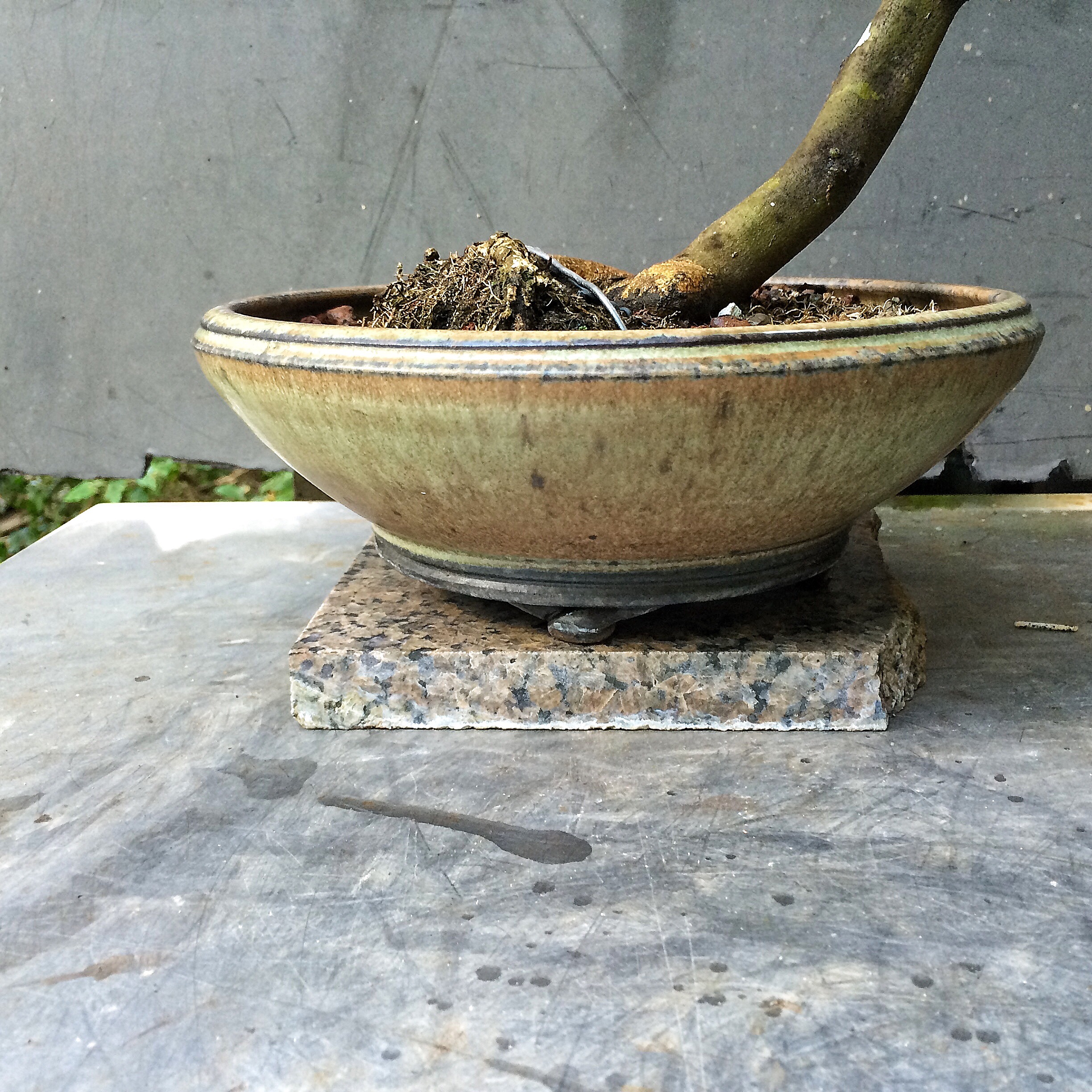 Before I repot a BRT (as it shall now be abbreviate henceforth), I will usually defoliate the whole tree. This time I will try to keep all the leaves attached in a misguided attempt at making a pretty tree for the after shot. Let’s see how that works out.