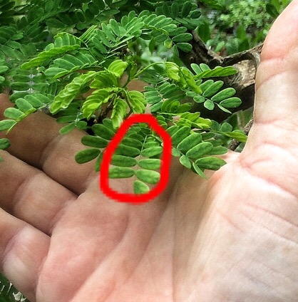 Brazilian Raintrees are in the legume family, which means that the fruiting body tends to be in the form of a bean of some kind. It also means that the leaves are compound. Those little dealies that look like leaves are called leaflettes. This whole structure is the leaf.