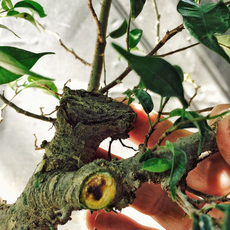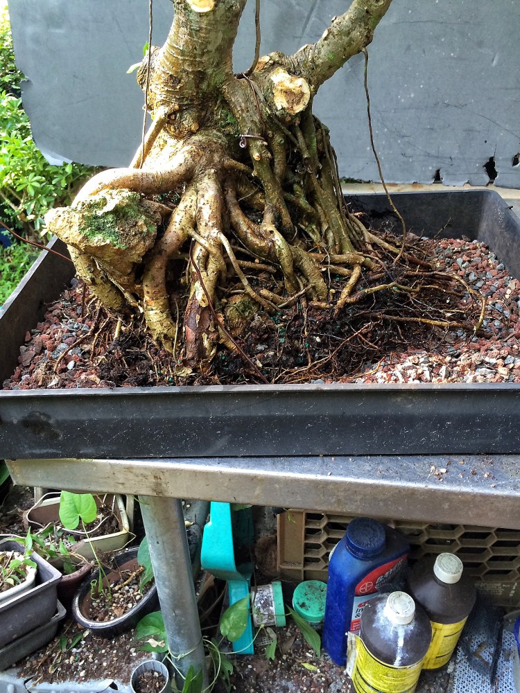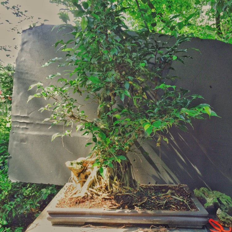 Like I said, no love for the tree. Our Bohemian friend (maybe he said Roma, like a gypsy, I just don’t remember) just doesn’t like benjamina bonsai. But how can you not? Look at the trunk and base.