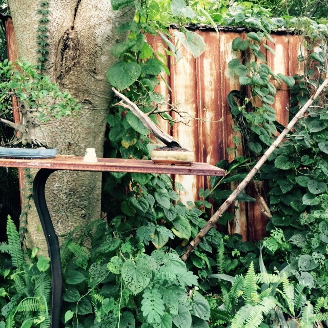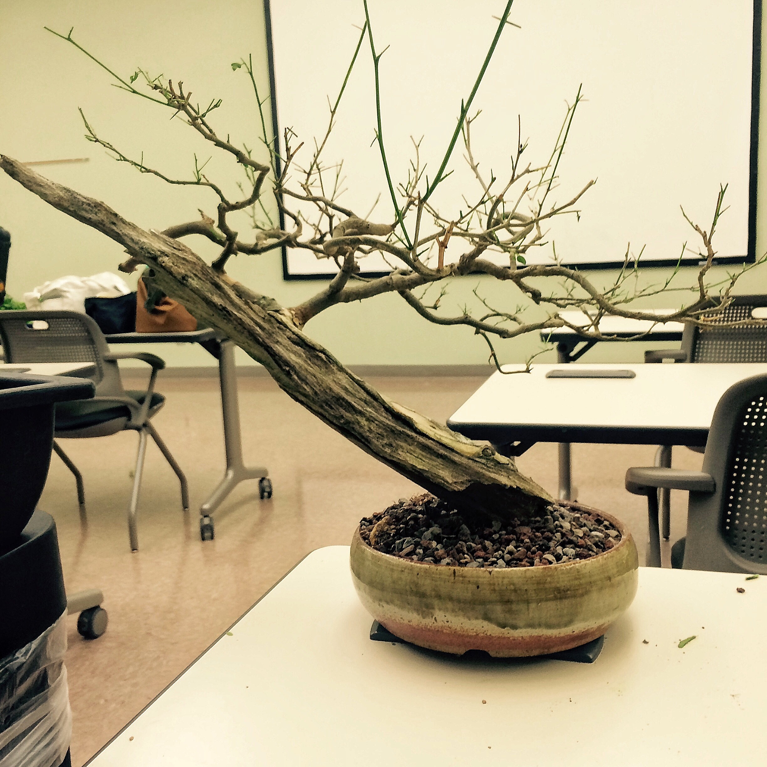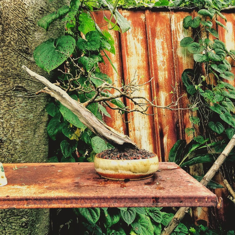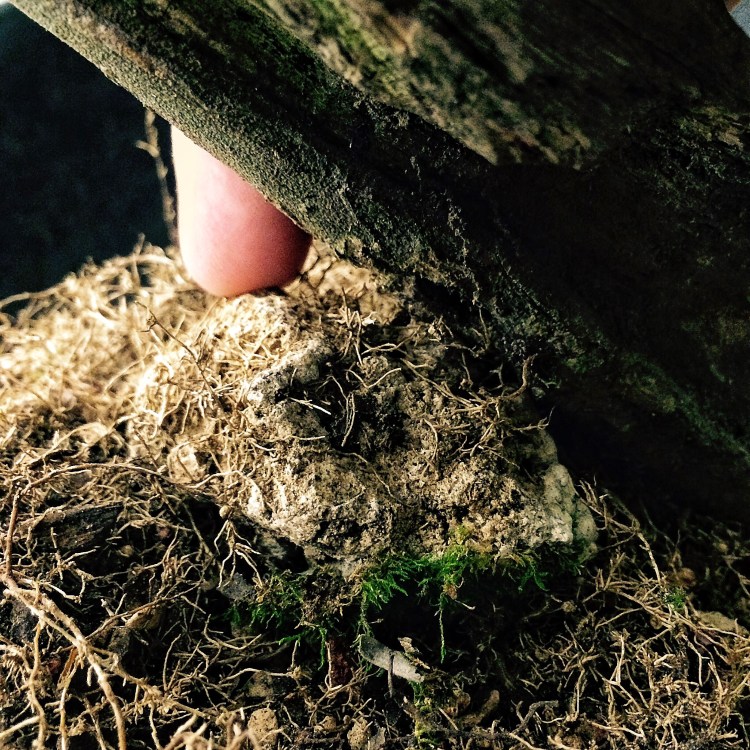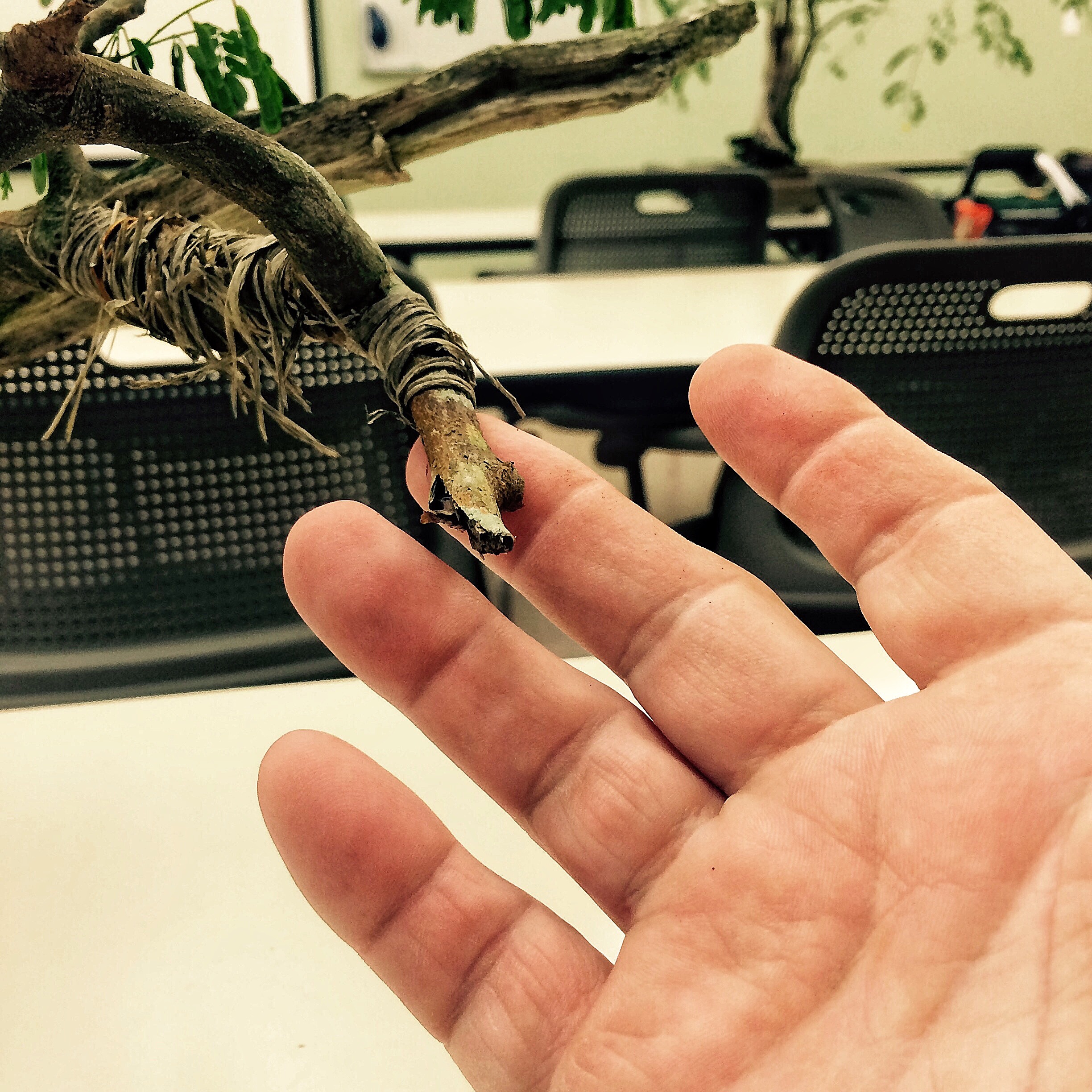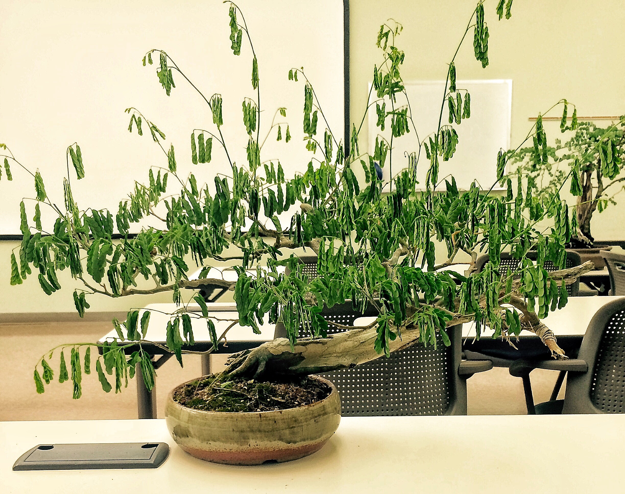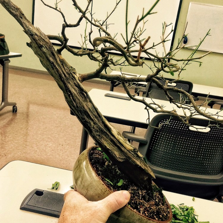 Flashback to December, 2014. I was in the hospital, full of shit (I’m sure there were beans involved), trying to stay alive. I guess there was a mighty windstorm (or my rambunctious 6 and eight year old boys) and one of my Brazilian Raintrees was blown/knocked off the bench. My brother in law got it cleaned up and fixed as best he could. The pot, surprisingly, didn’t break.