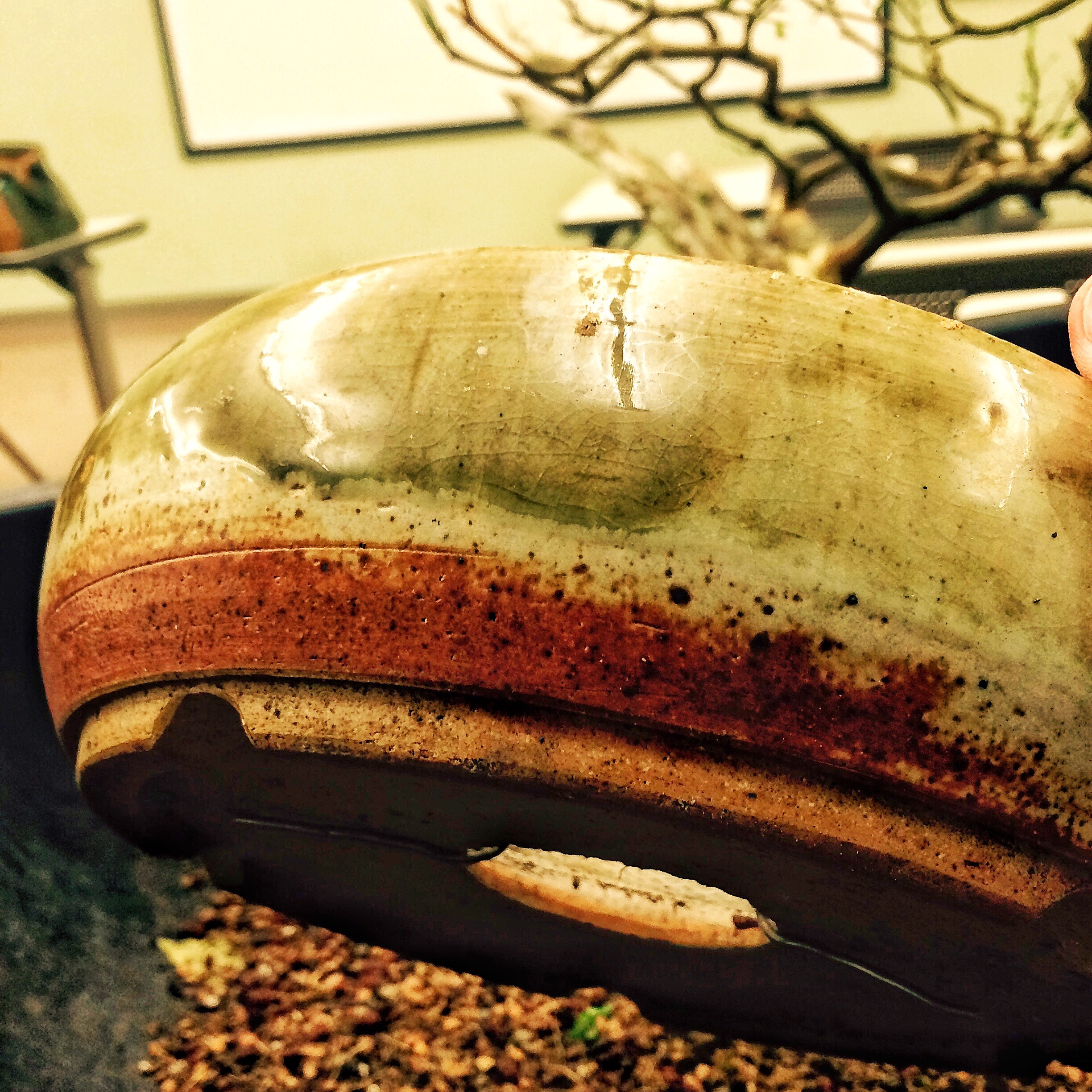 Beautiful glaze, awesome lines. Really a work of art. And it didn’t break when it fell of the bench.