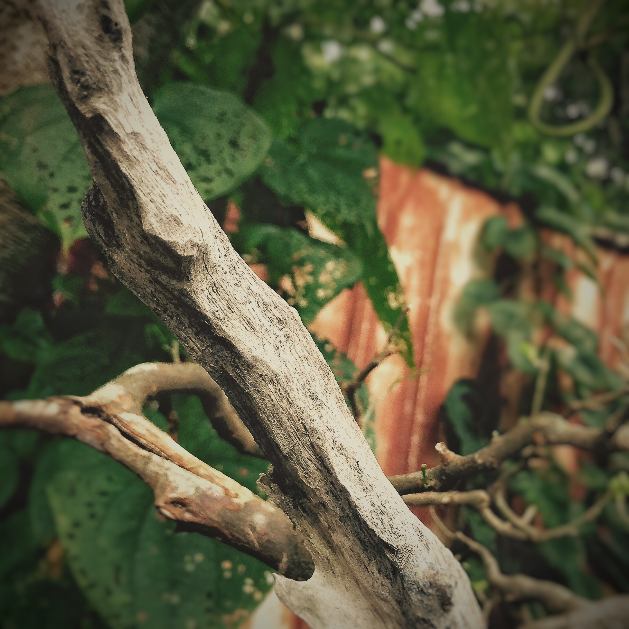 There are no back branches left if I use the original front either, and the dead wood is hidden. I know! Let’s flip it around.