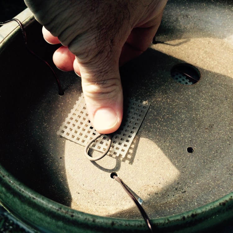 Here’s a tip for you, involving the securing of those pesky drainage hole screens. My method (the only one you really need learn, IMNSHO).