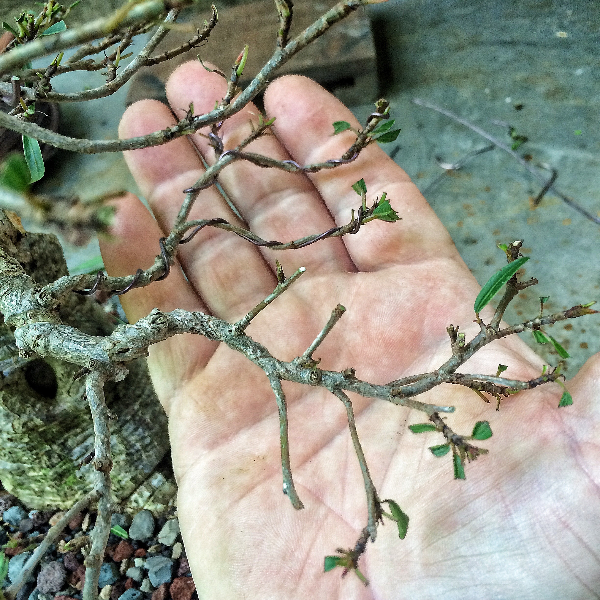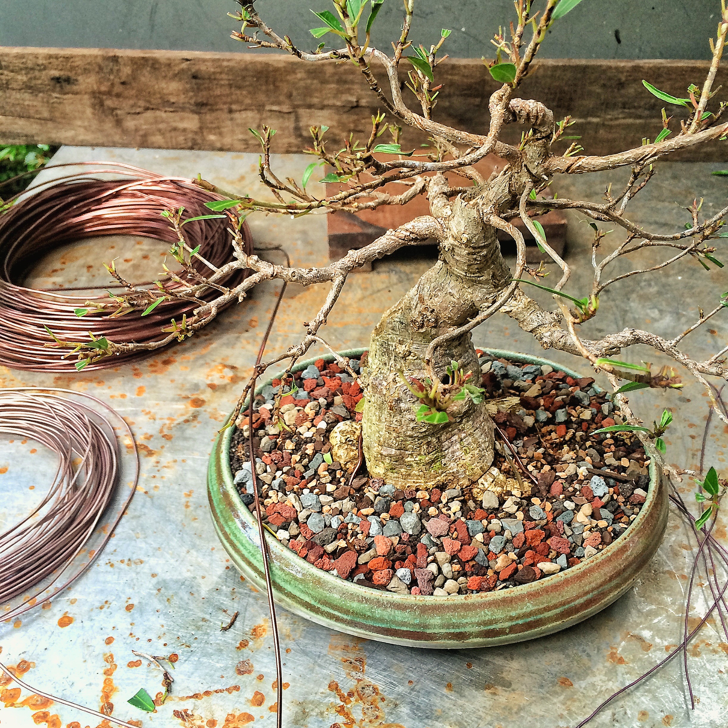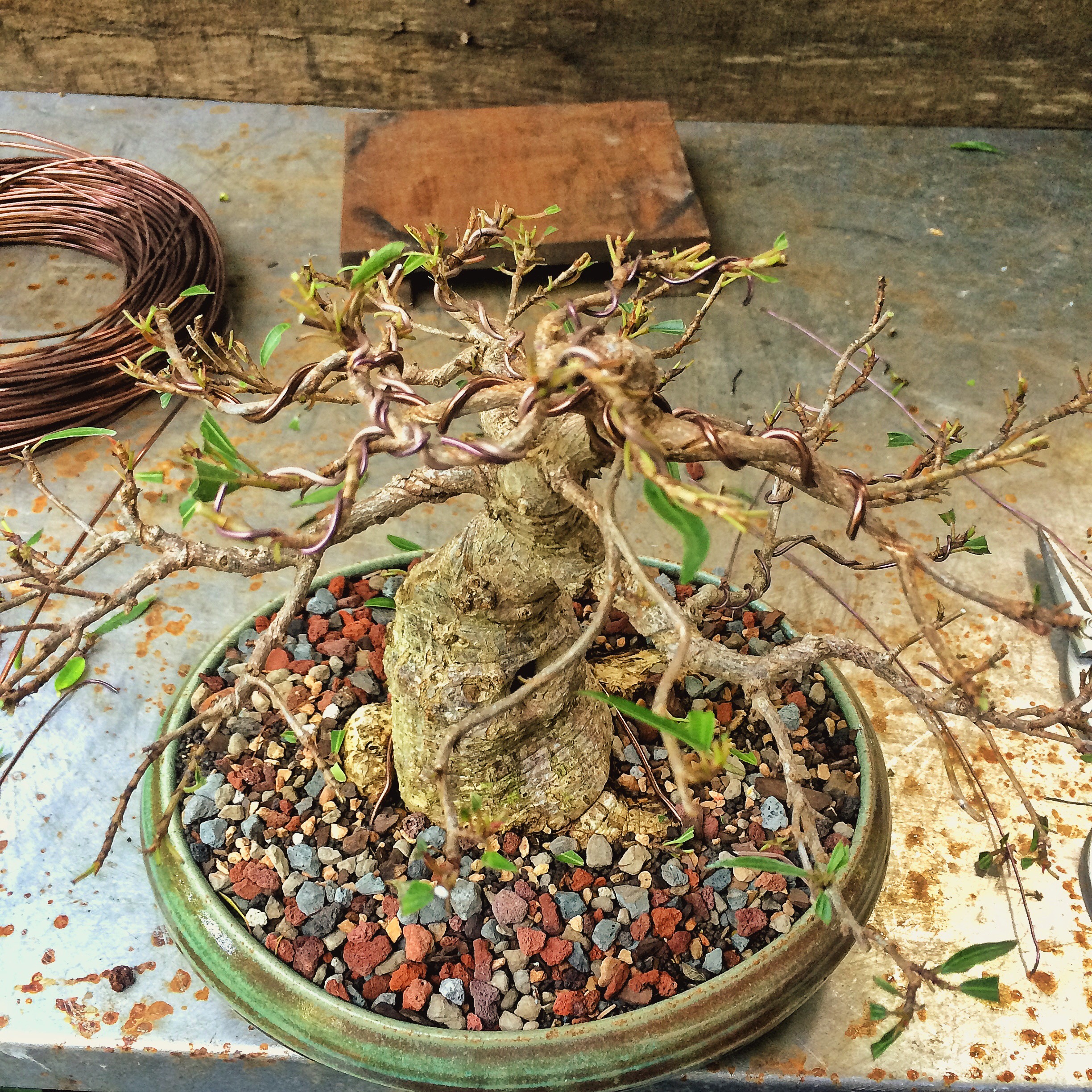 There are a few branches that need a few spins of wire but I’m letting it grow; wiring sometimes slows growth because the bending could damage and restrict the sap flow. All I did was remove the top layer of soil, added fertilizer and put a new soil layer over that.
