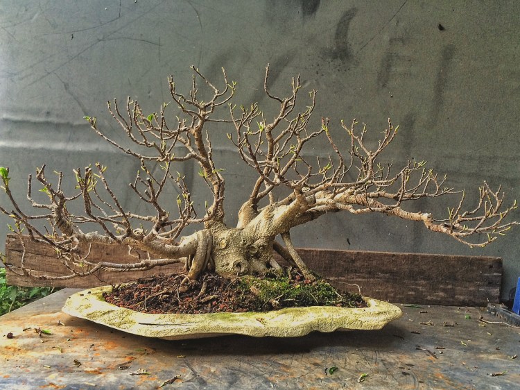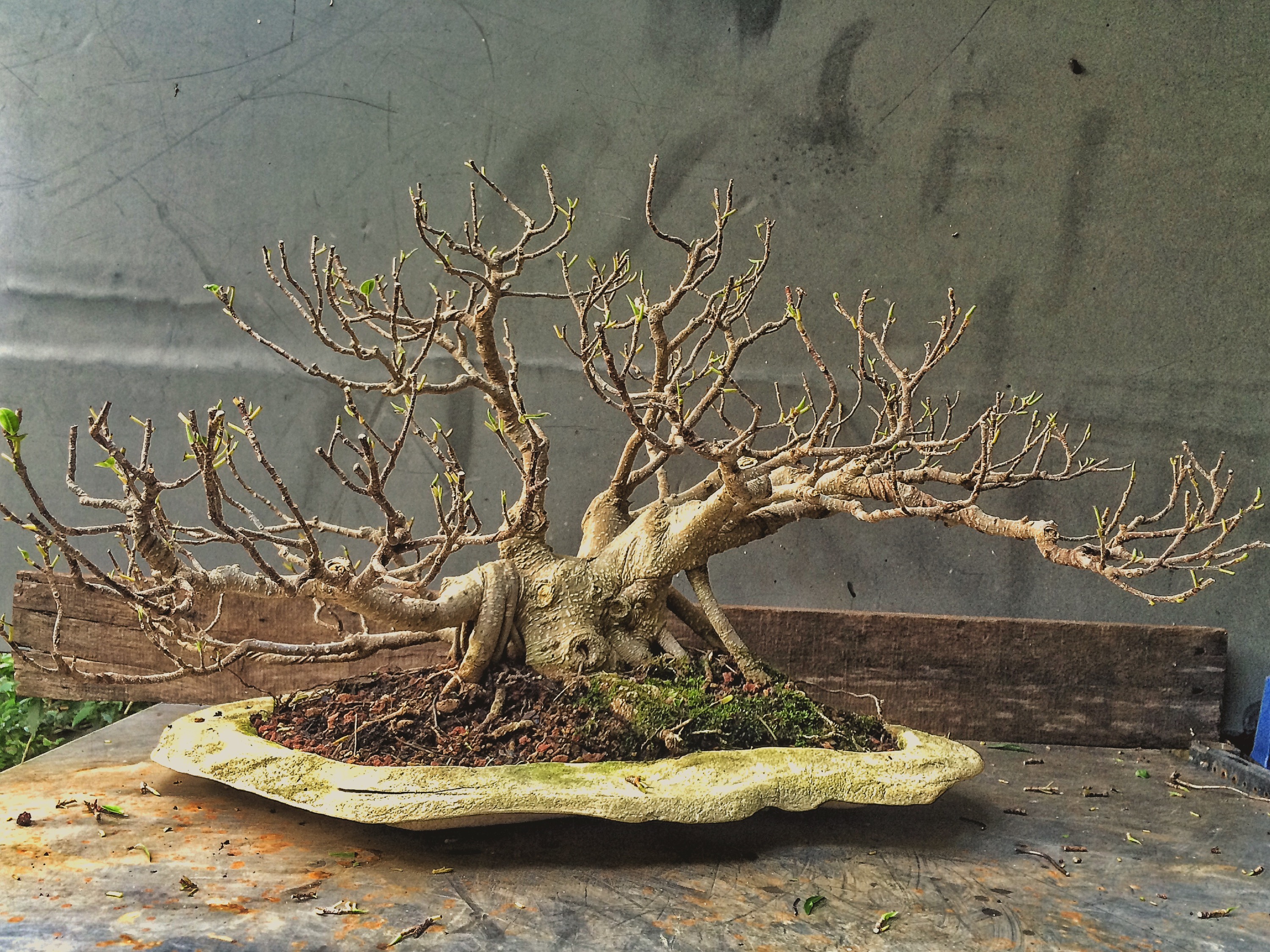 I think I’ll change the pot this time too. If you haven’t been active in the Facebook bonsai scene, there are several auction pages and groups that one can find good deals (on one of a kind trees or pots, and other bonsai related sundries) that have come into being. I won this pot from one of those auctions.