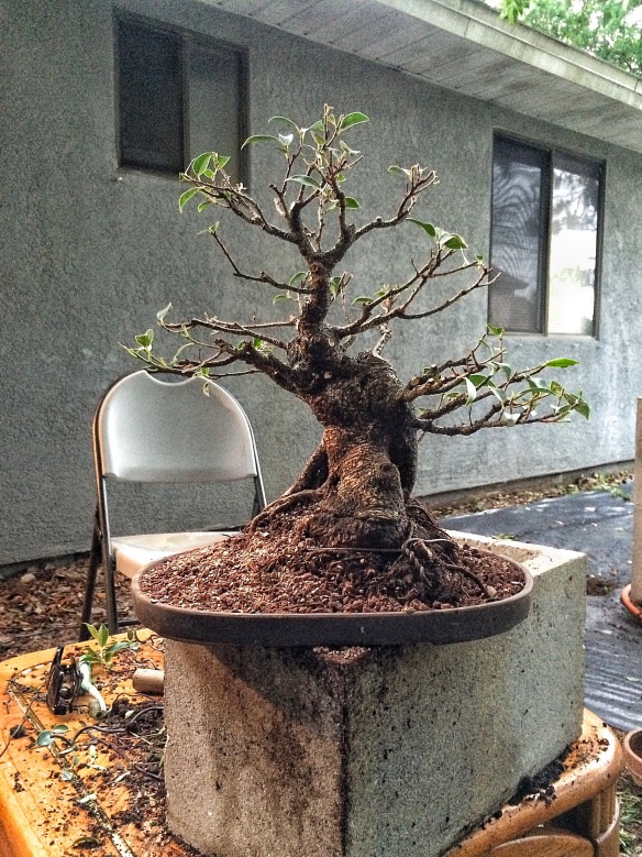 Next up is one of the trees that put me, briefly, in the hospital, way back in April: a tiger bark ficus I got from my friend Seth during a marathon styling session.