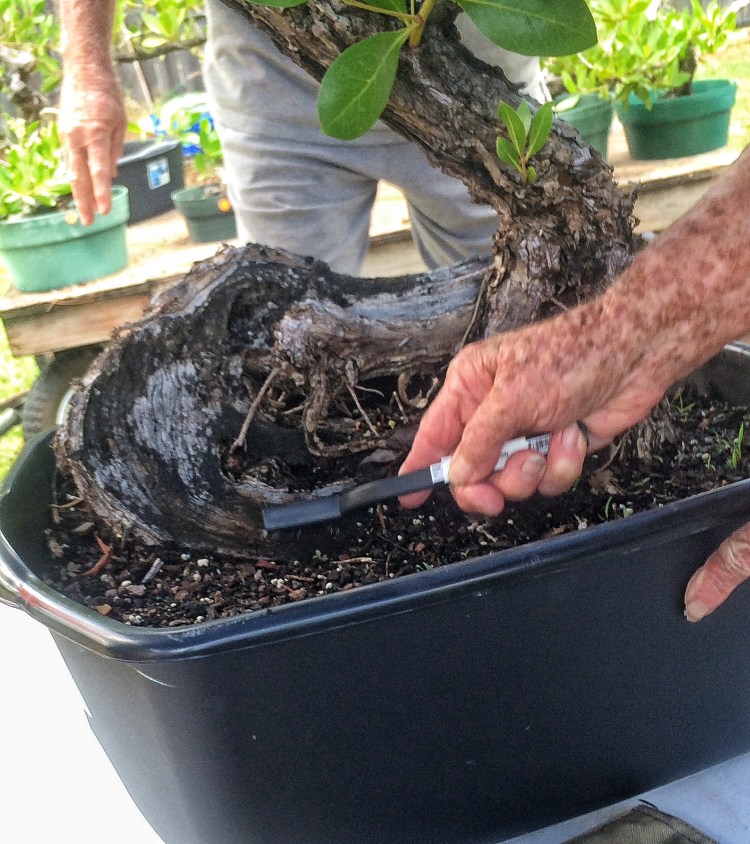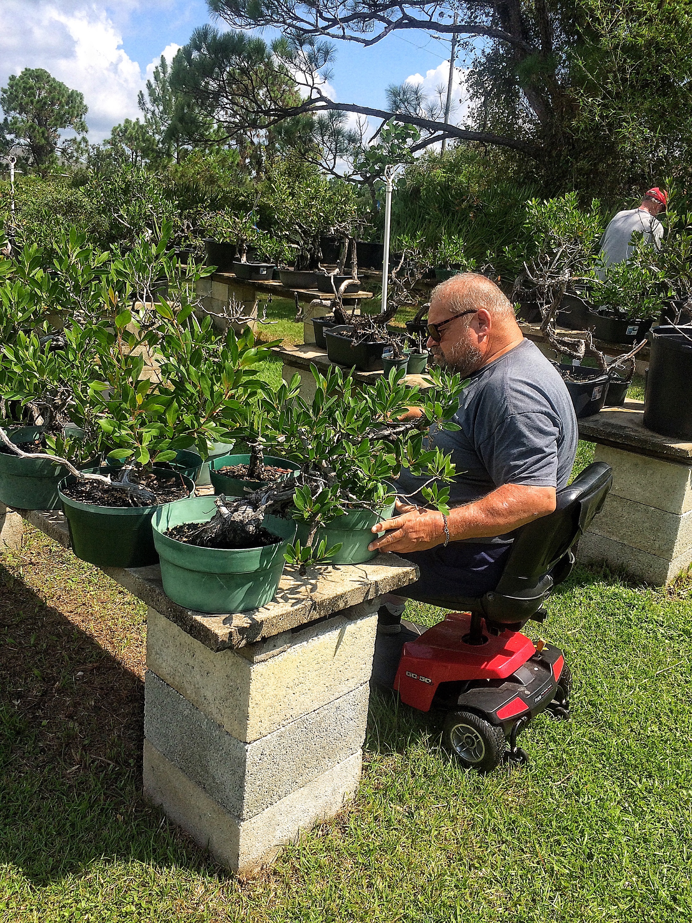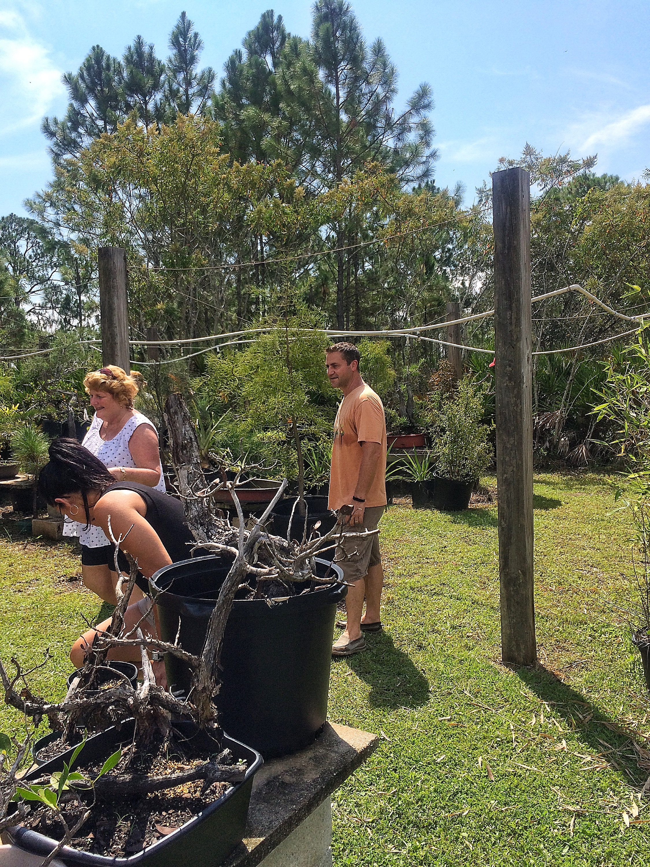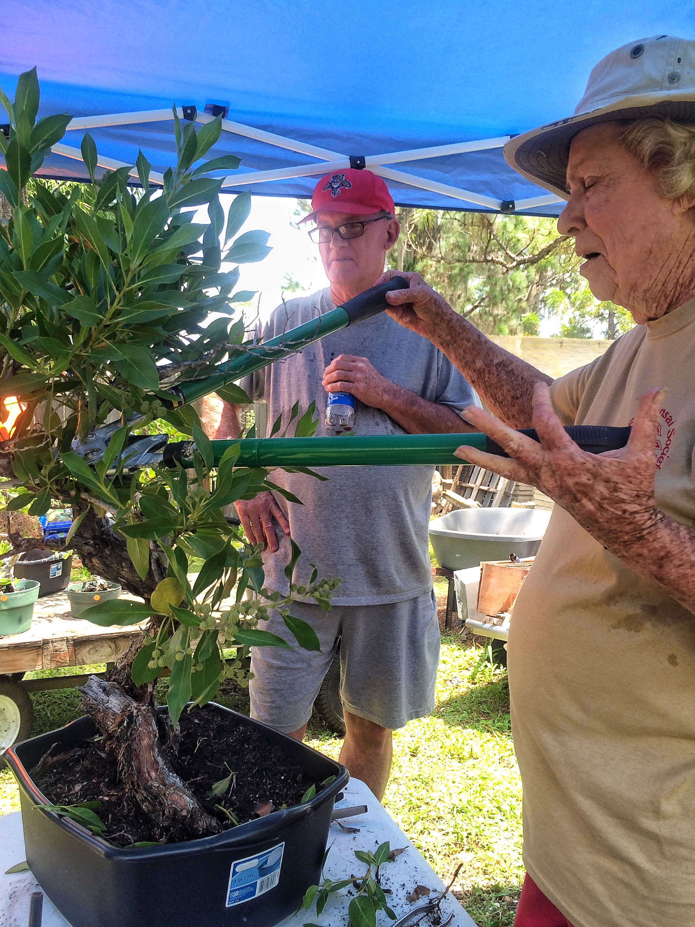 The Central Florida Bonsai Club has an annual fieldtrip in August where we visit Mary Madison’s home in Lake Placid Florida. Mary is, indisputably, the Buttonwood Queen, owing to the fact that probably 80% of all buttonwoods that have been displayed in high profile shows were first collected from the wild by her. She specializes in rescuing the trees before the bulldozer rips them out of the ground to make way for another retirement condo or timeshare highrise.