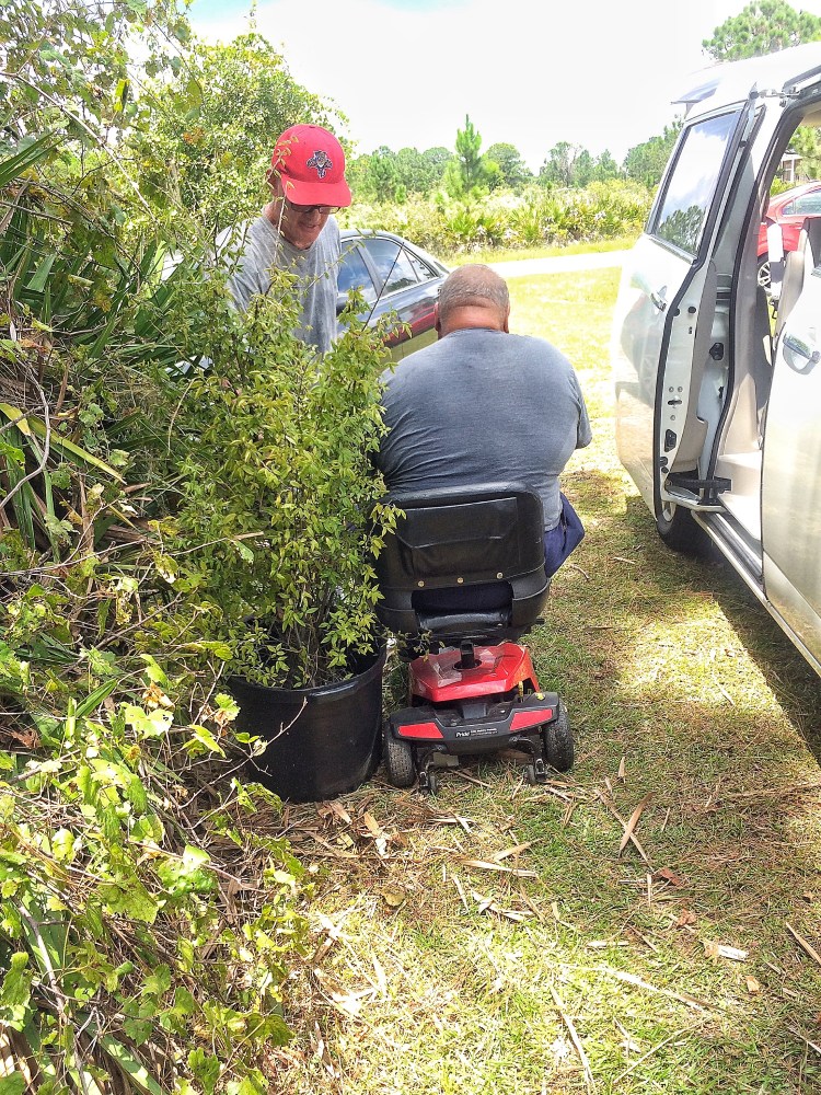 I carpooled with Sandy, Don, and Dick (or Richard, I’m not sure what he went by). Here’s Don riding his scooter at Mary’s, perusing the wares.