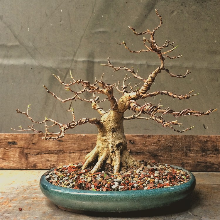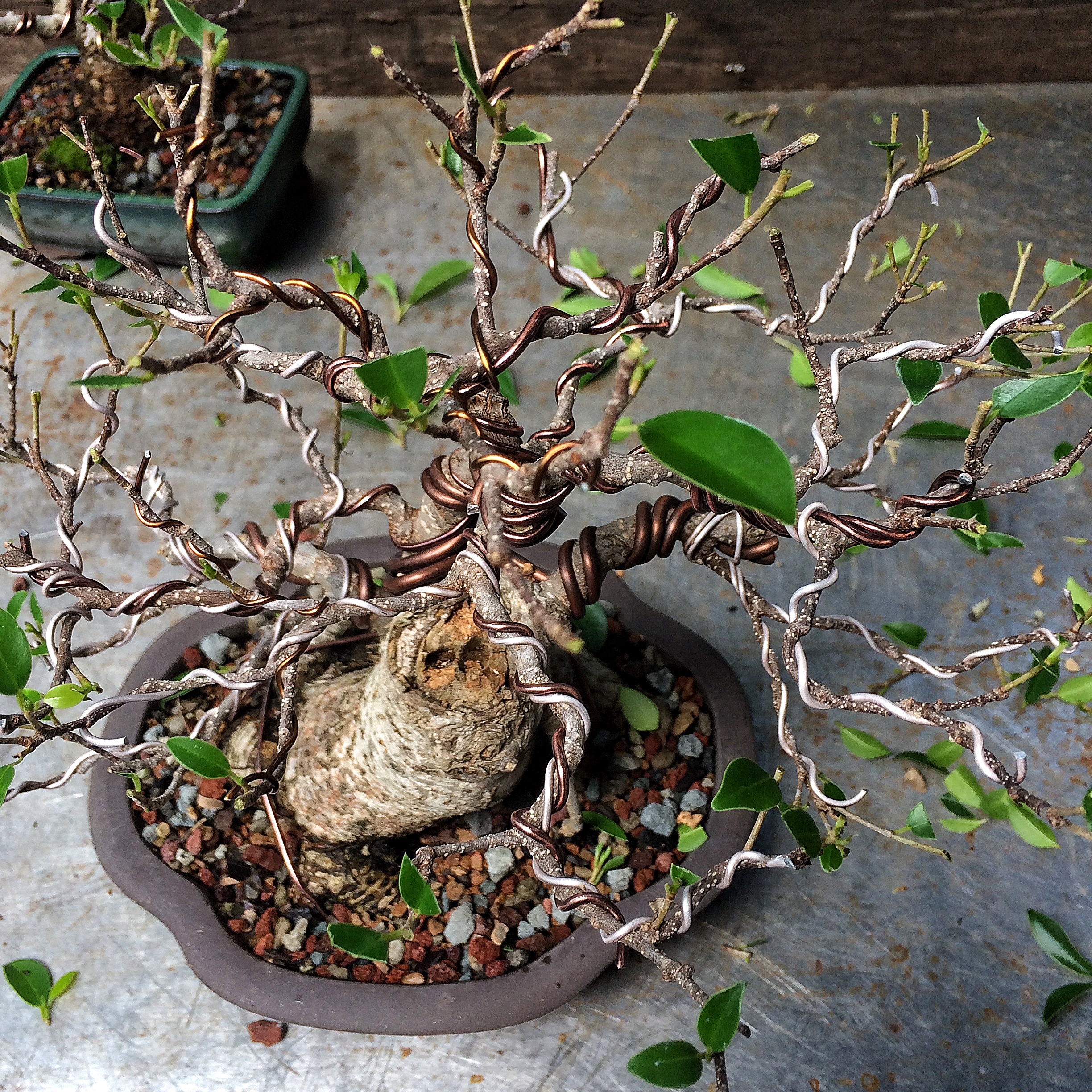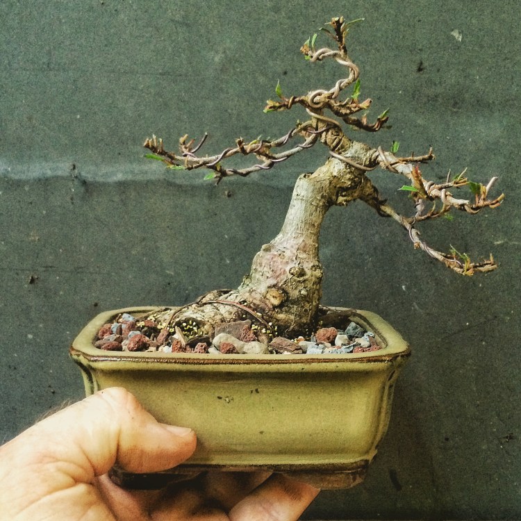 Just to confuse you, this was the repotted tree before the wire was removed.