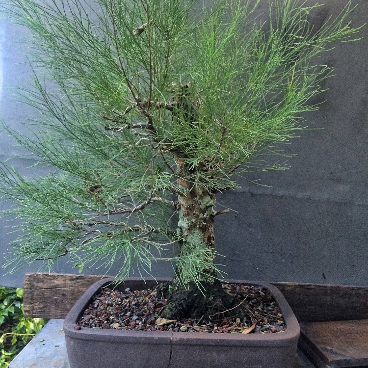 It is forbidden (on the invasive species list) in Florida (and why you don’t see it for sale here much because of this, not to mention the difficulty in getting collected material to live). One reason is that the leaf litter has a chemical property that inhibits seed germination (called allelopathy. I have an idea: Aussie pines are easier to eradicate from the landscape. We have another invasive called the Brazilian pepper which is not so easy. It will take a few years but, if we planted more casuarinas in the pepper plant stands, they’ll kill them peppers off. And then we can harvest the Aussie pines for lumber and bonsai…huh? Huh? That’s right, I’m a genius).