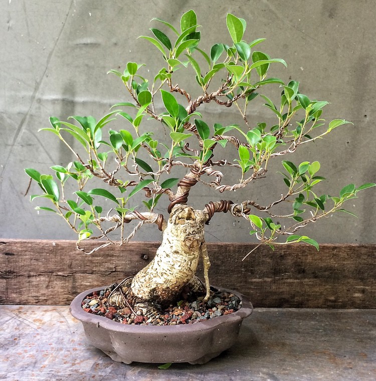 Case in point: one last ficus salicaria in development.  I wired it last season. I think a little spiffy-ing up is in order.   And with that, I am done for today. I’m making tacos for dinner tonight, gotta get to cutting up the onions and tomatoes and pressing the tortillas. Adios ya’ gringos!