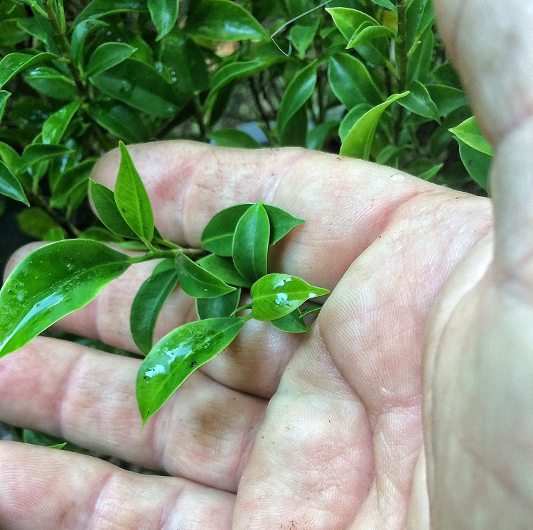 These leaves are as big as they get and, therefore and amazingly, will reduce smaller using the ancient and fantastical Far East techniques we call, lovingly, bonsai.