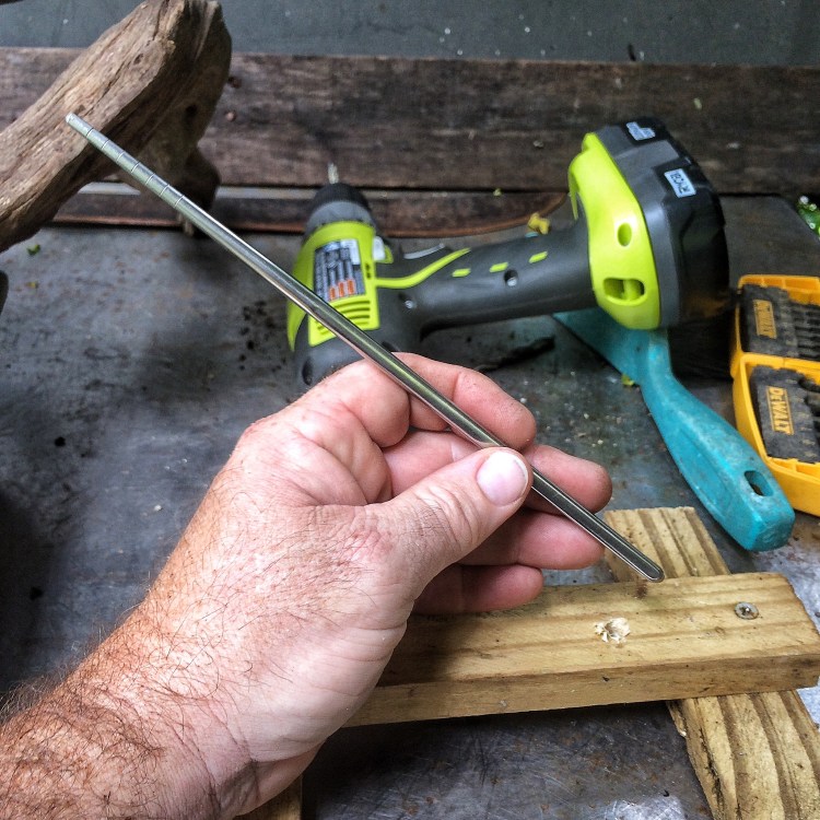Cut the aluminum chopstick to size with a metal cut-off wheel.