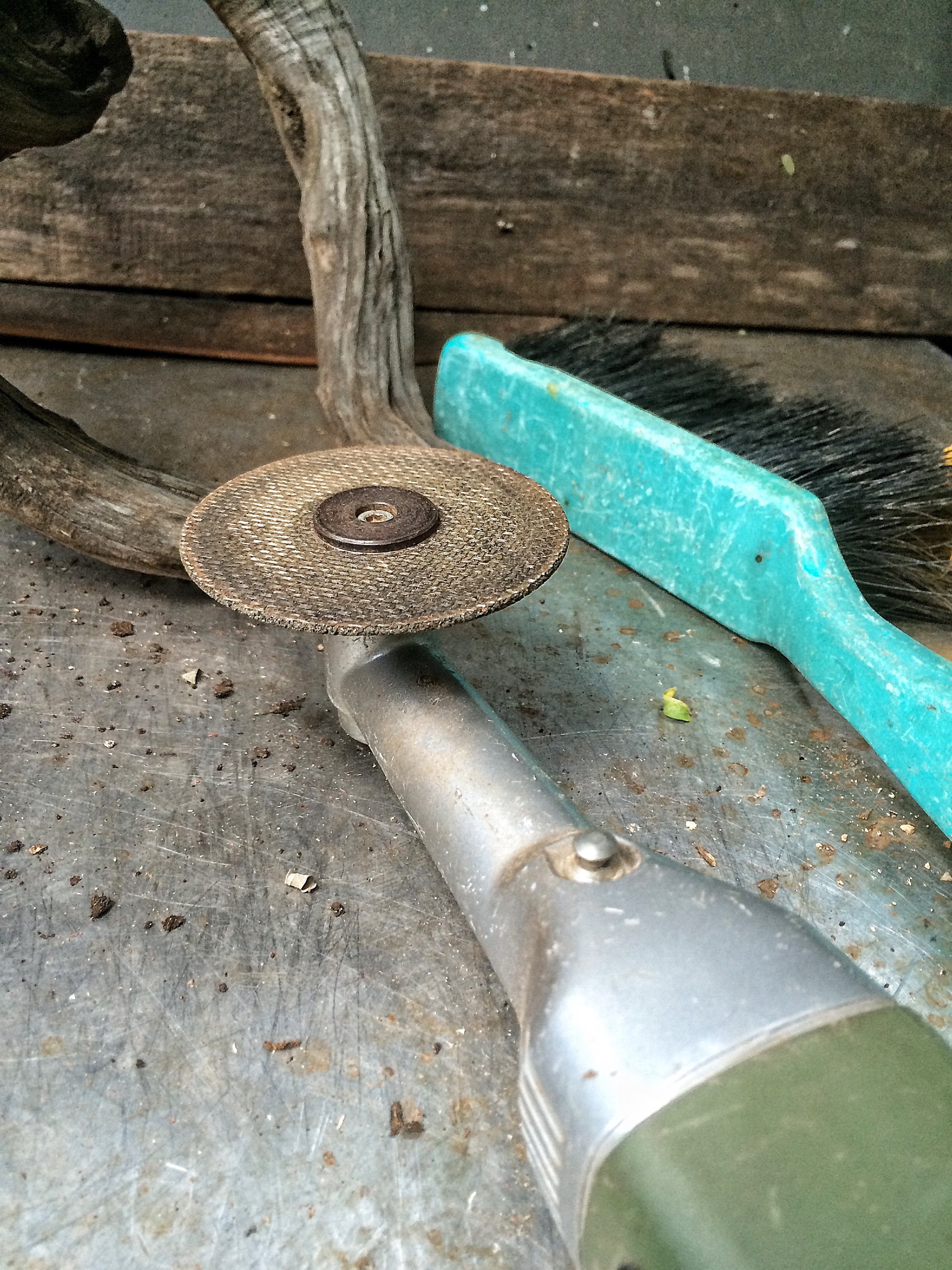 My long shafted die grinder (‘cuz I’m cool……ok, I’ll stop). And the groove all layed down on the wood (that sounds…..wrong…..somehow).