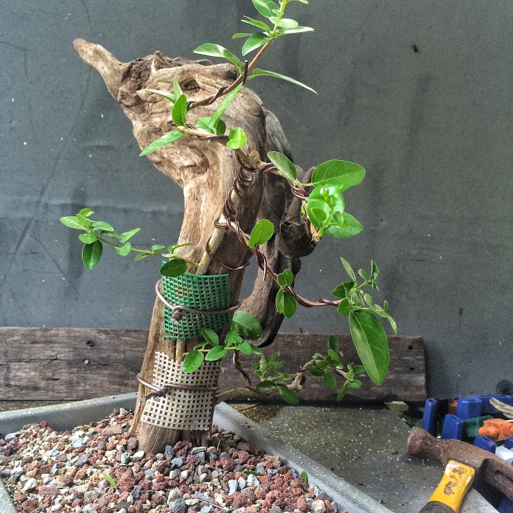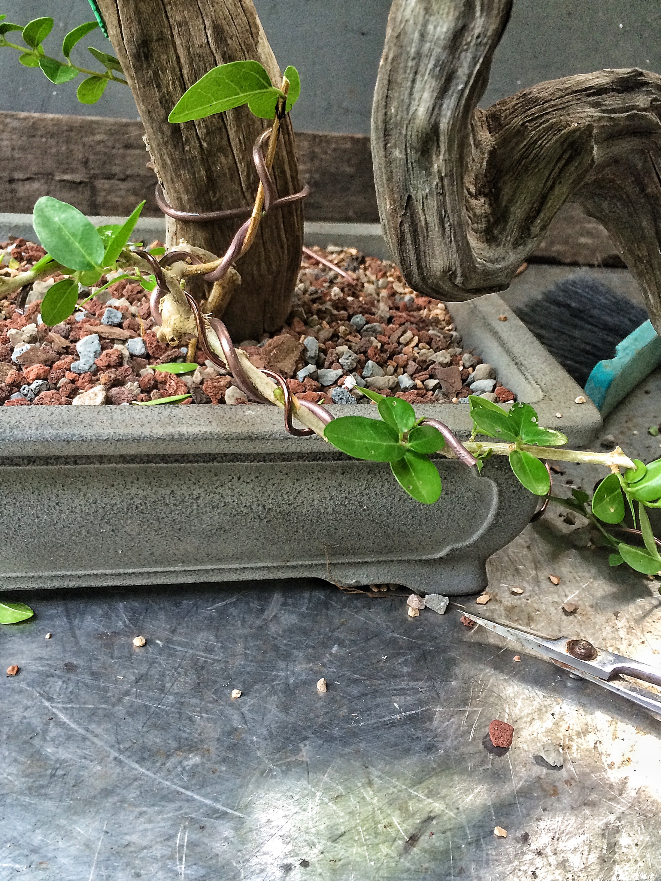 It’ll look a bit different I’m sure, especially that cascade part (I can’t quite see it yet in my head and I’m not experienced in premna growth habits yet, this being my first attempt and all) but it’s a start.