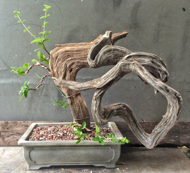 Good Job. My problem is to find a piece of driftwood that will last in the tropics. We don’t have California redwood here in Barbados. Premna is a good plant to use because they grow quickly and the shoots grow long and slender. Will have to look around for a piece of driftwood that I can apply Minwax wood hardener to. That extends the life of deadwood down here.