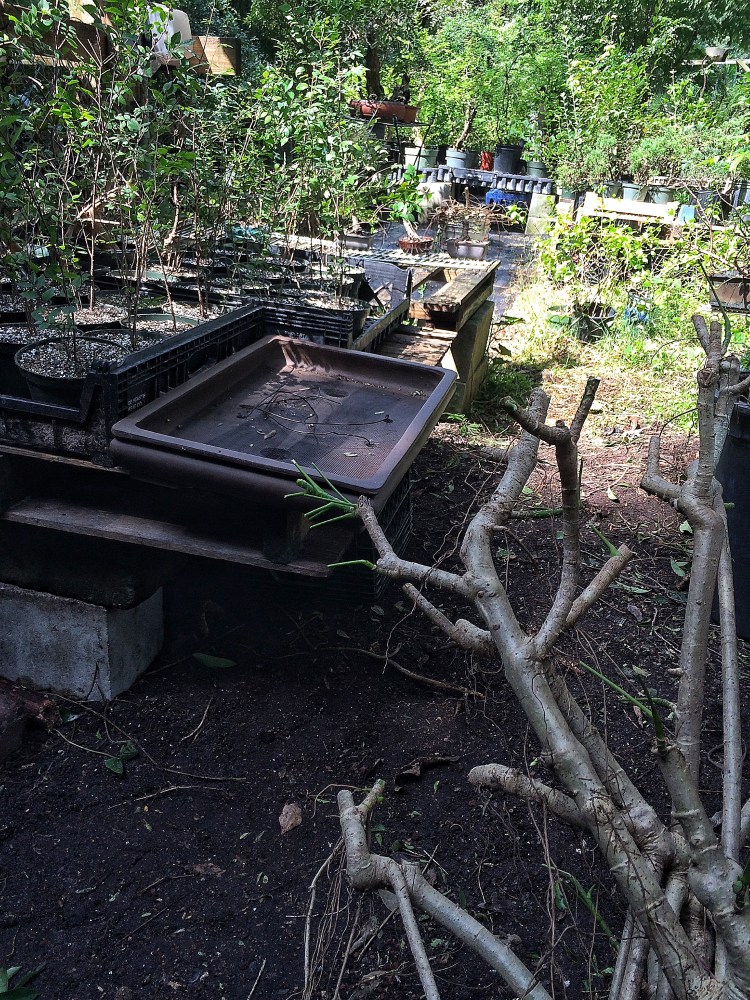 ….then you cut it back, then get tall again, and cut it back, etc. One could say that this growing and chopping is a bonsai technique but, you know what, they use the same technique growing Christmas trees too (I must admit, I have said, in the past, that the large scale commercial bonsai farms in Japan growing black pine bonsai are producing nothing more than Japanese Christmas trees. Imagine acres and acres of near identical pines, about 2 feet tall, with the first branch on the right and the corresponding bend in the trunk…..first branch, second branch, back branch HAI! It’s like they’re all dancing to the same tune-probably “Watch me (Whip/Nae Nae)” by Silentó. If you know the song you are laughing on the floor. The moyogi style looks just like the dance……….if you are brave, look up the video. I warn you, it’ll be stuck in your head all day).