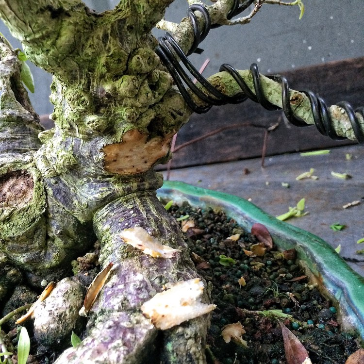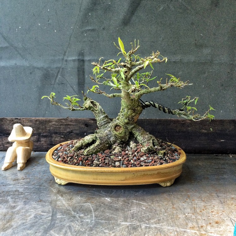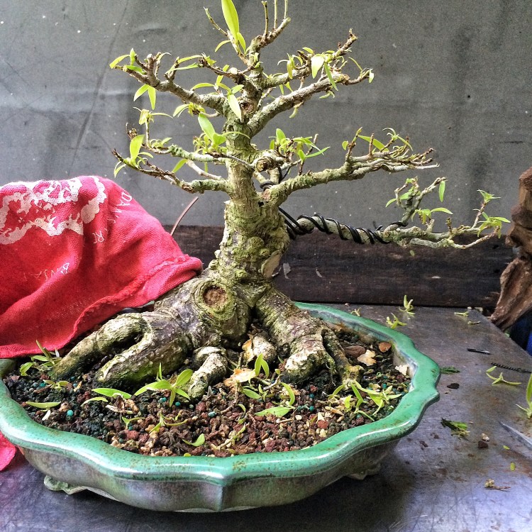 Like I said, I left those branches long and even left more than I’ll use in the final design of the tree, but I think it’s a good start. And to those of you saying that I should have kept the tree in that bigger pot to speed development, nope. I want slower growth now. In that big pot I would get foot long shoots in weeks. I don’t want that. I want short internodes and increased ramification and the smaller leaves that that creates. It’s time for bonsai techniques now.