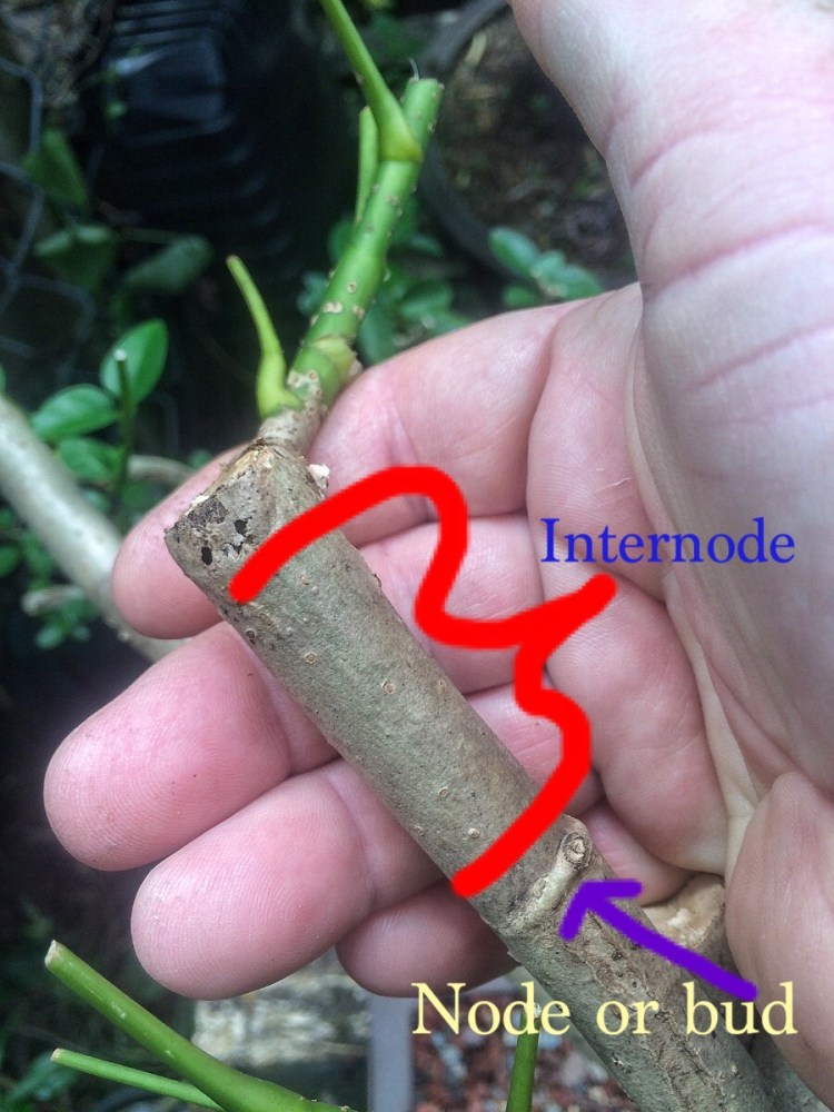 If I make a cut anywhere in the internodal area, the branch will just die back to the next node. It’s annoying but, if you are aware of it, it’s predictable.