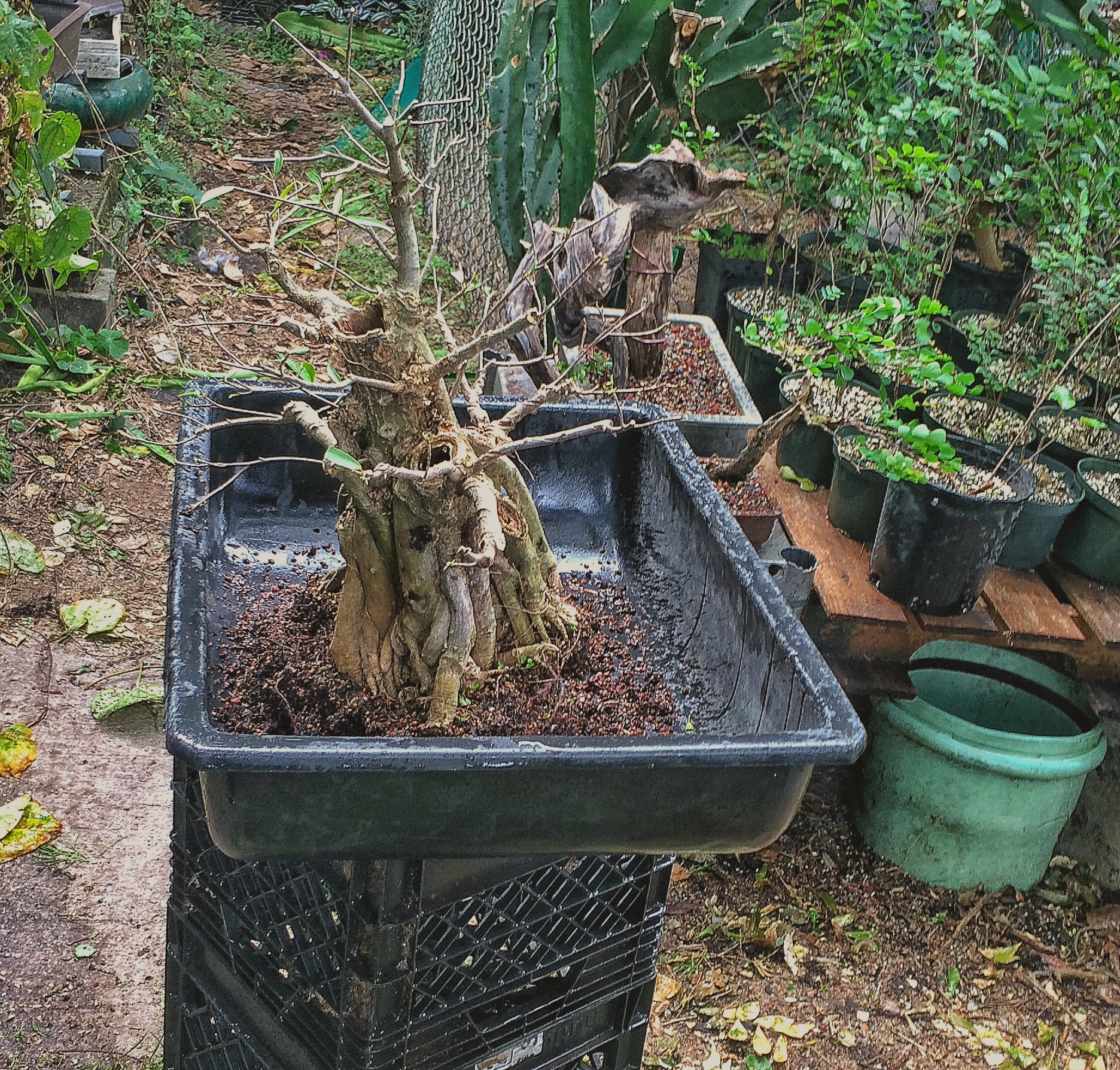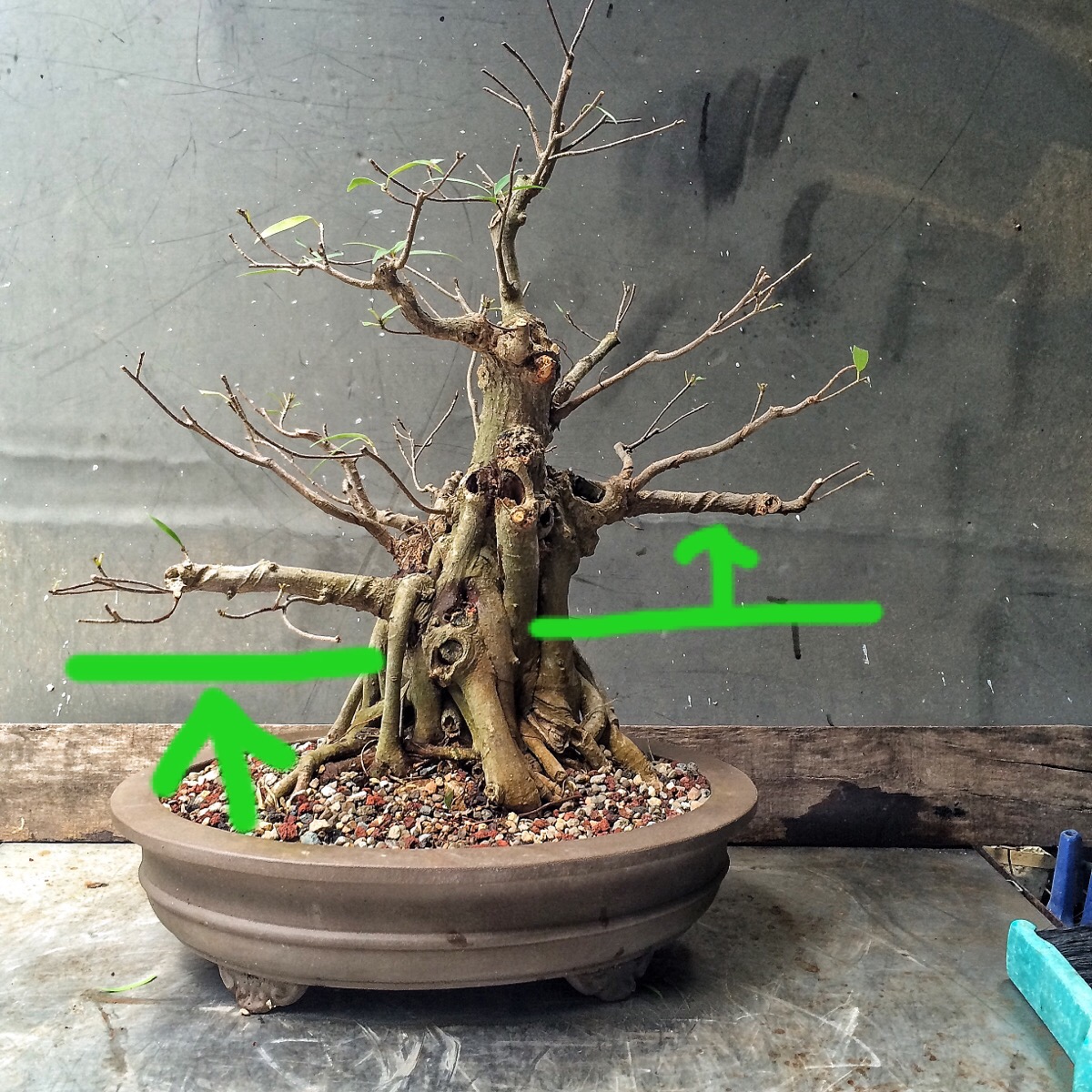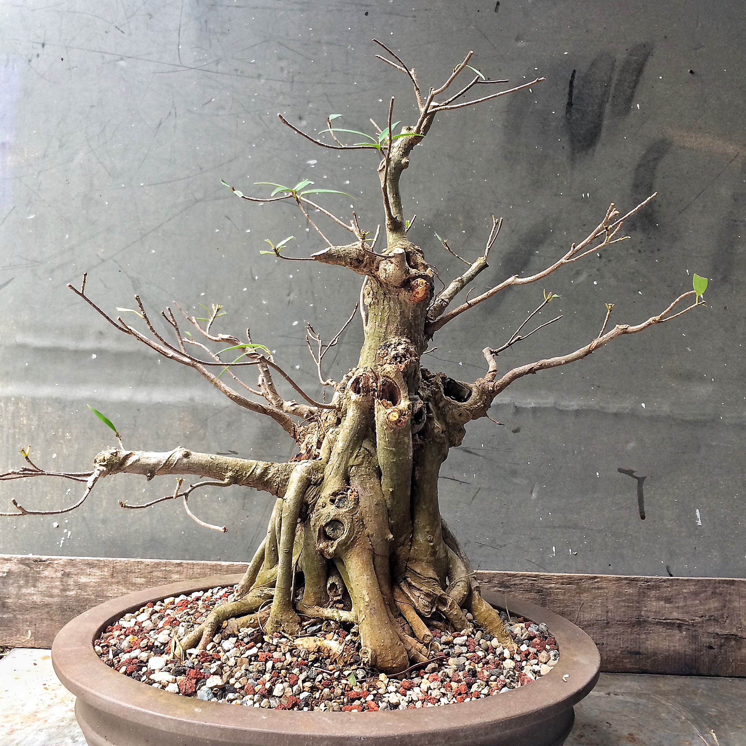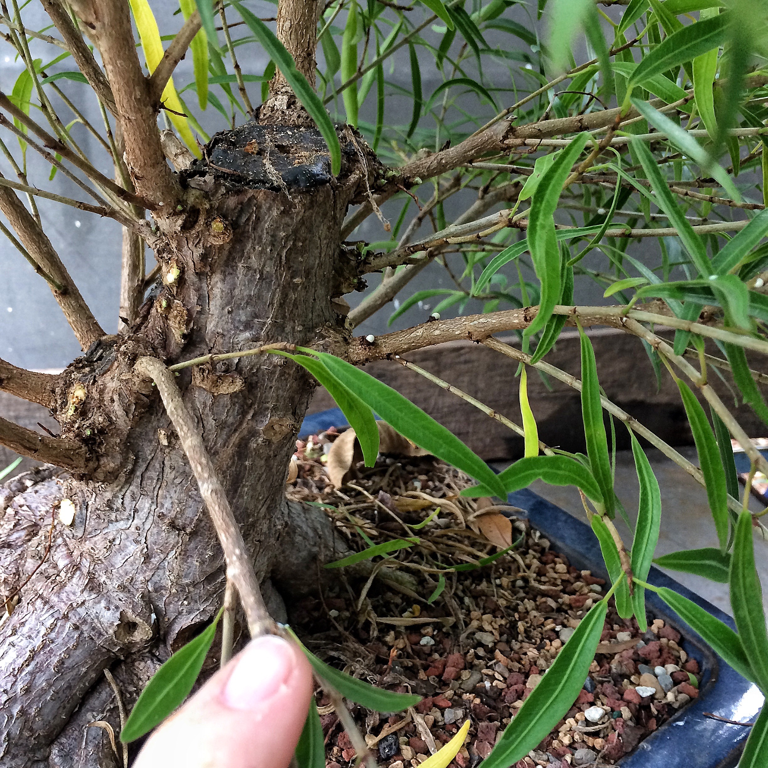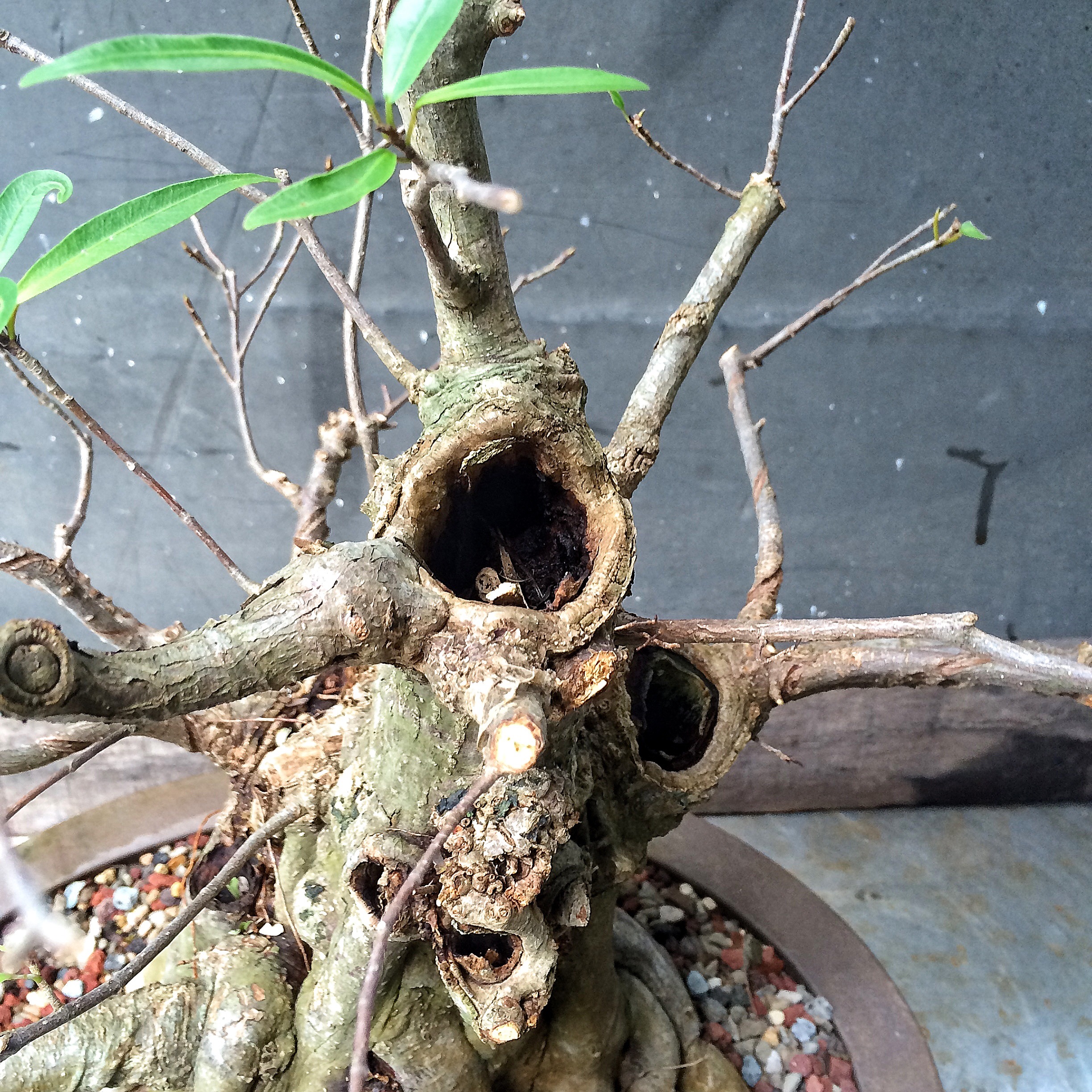 You have seen this tree before. It involved a trunk chop I believe. I just can’t find the link. Sorry. I have failed you, miserably, as the curator of my own work (I seriously need a manager. Someone to tell me where to go, to talk to venues, clubs and promoters for me. Most importantly, to deal with enumeration and amenities. Any takers?) I suppose I should begin. Oh, I’ll be working on this fat bottomed tree too. Another Willow leaf ficus.