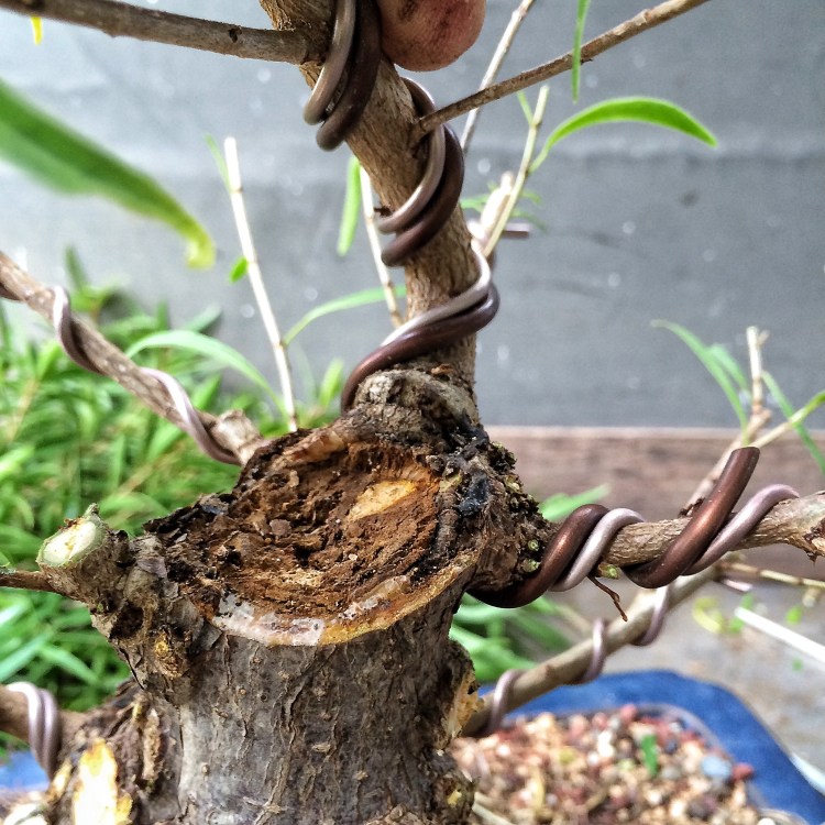 I’ve had the tree for many years and I’ve not really done much to it except topiary trim it. Your seeing it after a hard prune that I did yesterday. And I see that there are some problems. These two branches are pretty straight.