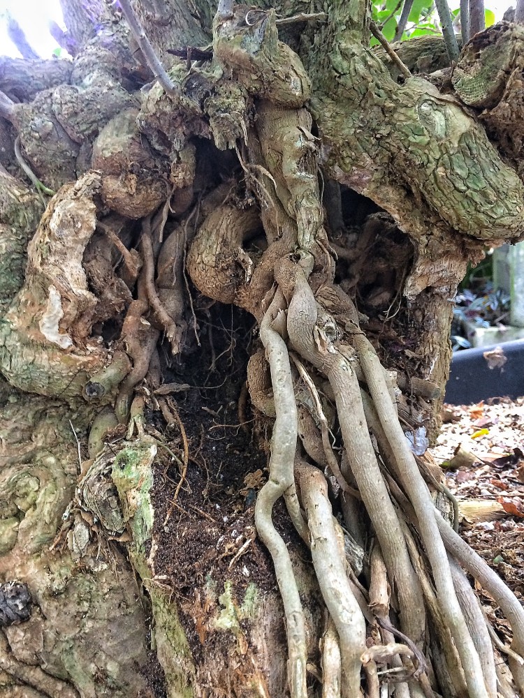 Then, because it’s too late in the year to cut back the roots too much, we up-potted it into a slightly larger pot.
