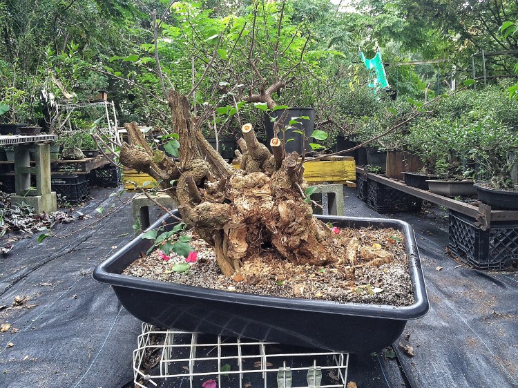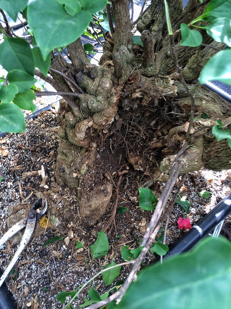 Actually, it was out of his neighbors yard where I dug out the main subject of this article, a bougainvillea (which was chronicled in This Post). He brought a Brazilian Raintree to work on as well. I, of course, told him to defoliate it and cut off the thorns.