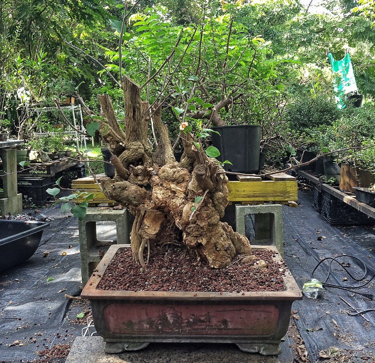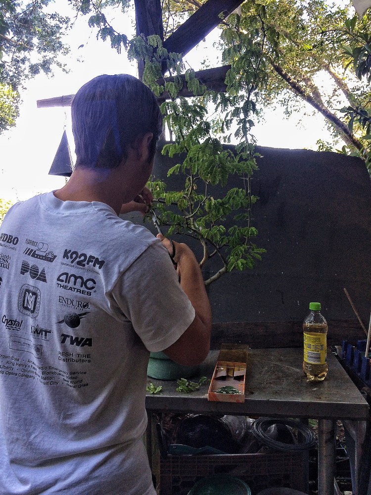 Actually, it was out of his neighbors yard where I dug out the main subject of this article, a bougainvillea (which was chronicled in This Post). He brought a Brazilian Raintree to work on as well. I, of course, told him to defoliate it and cut off the thorns.