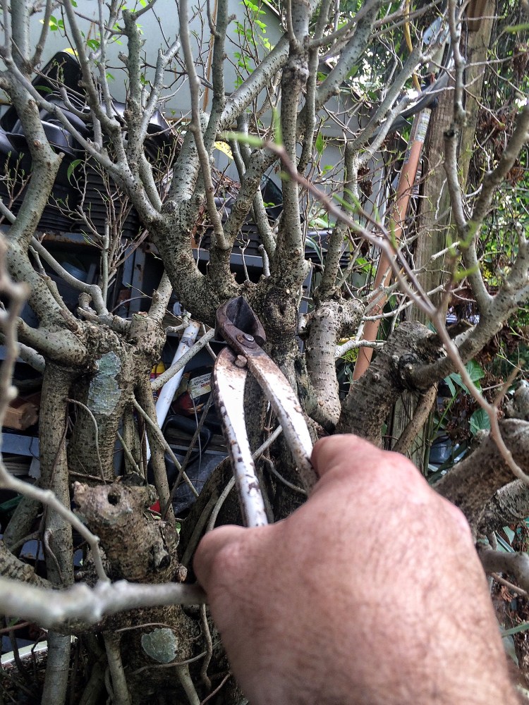 So, after about an hour of cutting off the leaves, it’s time to do some pruning.