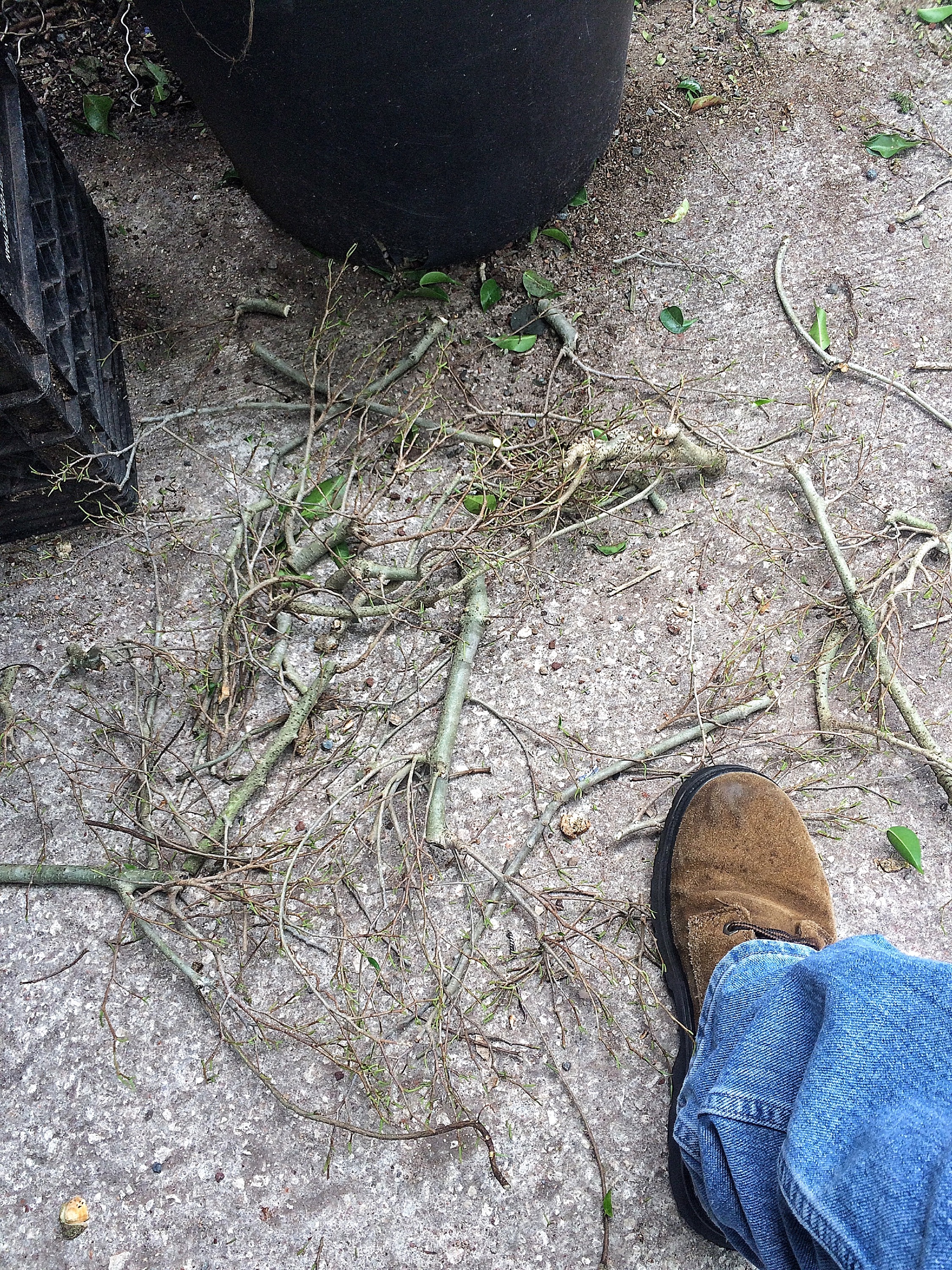 I need to fix some of the bigger aerial roots. They’re bugging my boy, Seth. I sent him a picture and he got all huffy. He’s a bit more conservative than I am.